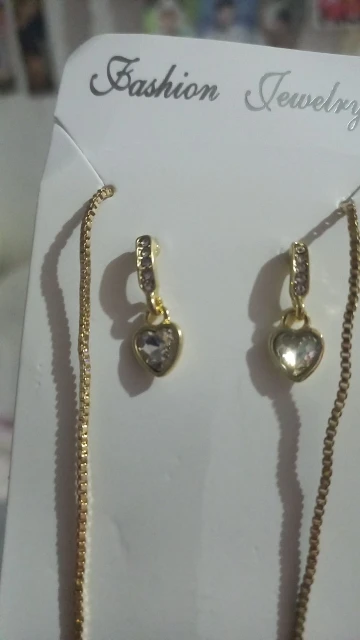 Double Heart Necklace Earrings Rhinestone Gift Set For Women