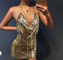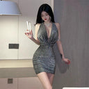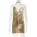 Shinny Metallic Halter Dress Glamorous Clubwear Fashion