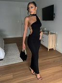 Solid Lace-Up Halter Dress Chic Ankle-Length Fashion