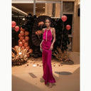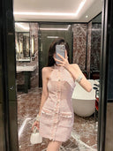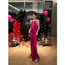 Dragon Fruit Halter Dress: Elegant Sleeveless Partywear