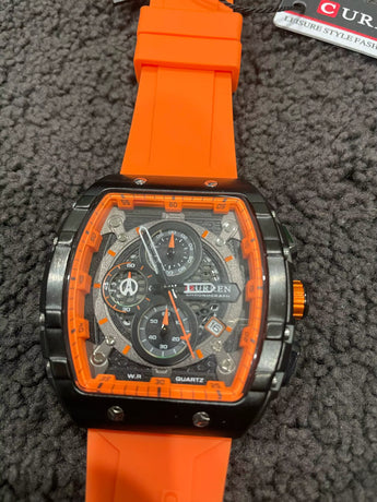 Mens Colorful Multi Functional Tonneau Quartz Watch