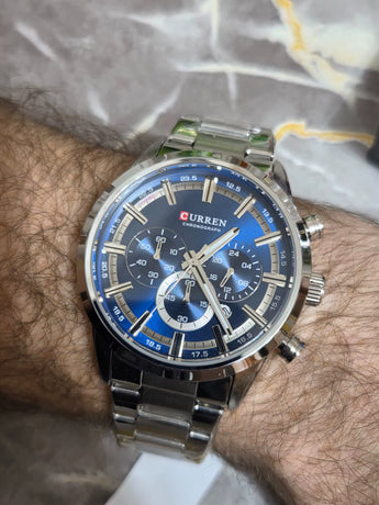 Men's Blue Dial Chronograph Steel Watch Waterproof