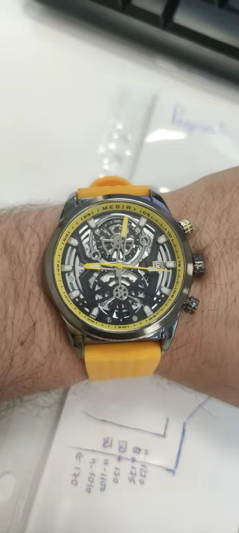 Megir Chronograph Watch For Men Yellow Silicone Strap