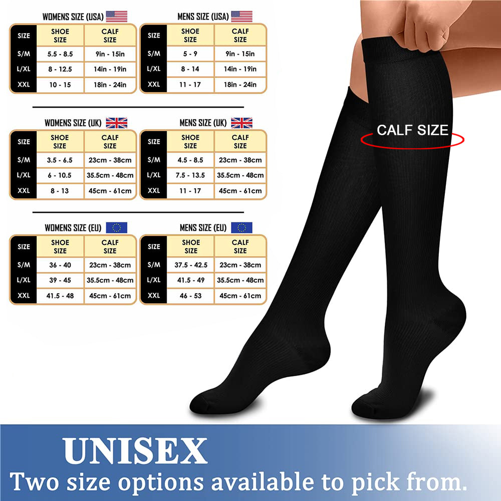 Available in three sizes, these unisex compression socks make a thoughtful gift for anyone who spends long hours on their feet. Treat yourself or find the perfect present for a loved one; our socks offer the care and support needed for active lifestyles.
