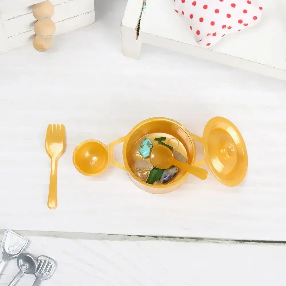 This cookware set not only enhances imaginative play but also serves as a beautiful decoration, adding a magical touch to any dollhouse. Perfect for collectors and hobbyists, it encourages creativity in decorating and arranging dollhouse kitchens. With this set, storytelling comes to life, providing endless opportunities for play.