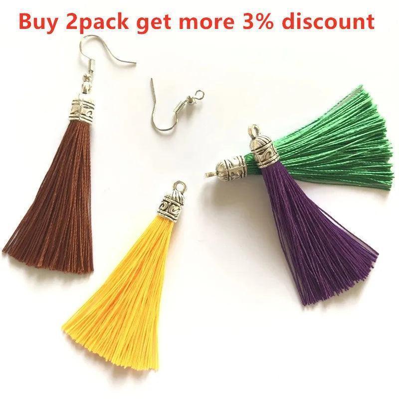 A: Each tassel pendant measures 6 cm, and the colorful tassels enable endless design possibilities—from boho chic to modern minimal—allowing you to tailor earrings to your mood or outfit with the silk tassel aesthetic in mind.