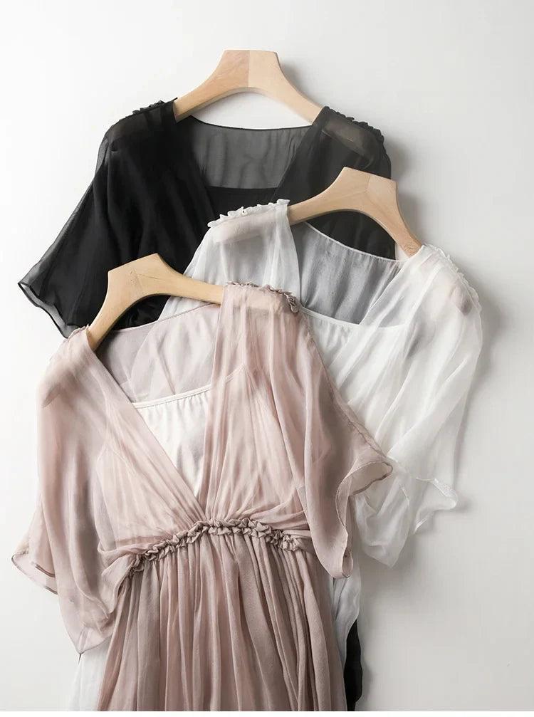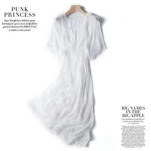 Step into summer with the 100% Silk White Dress For Women Summer 2024 Beach Maxi, a perfect blend of elegance and comfort designed for the modern woman. This stunning dress is crafted from premium 100% natural silk, providing a luxurious feel and unparalleled breathability for those warm summer days.