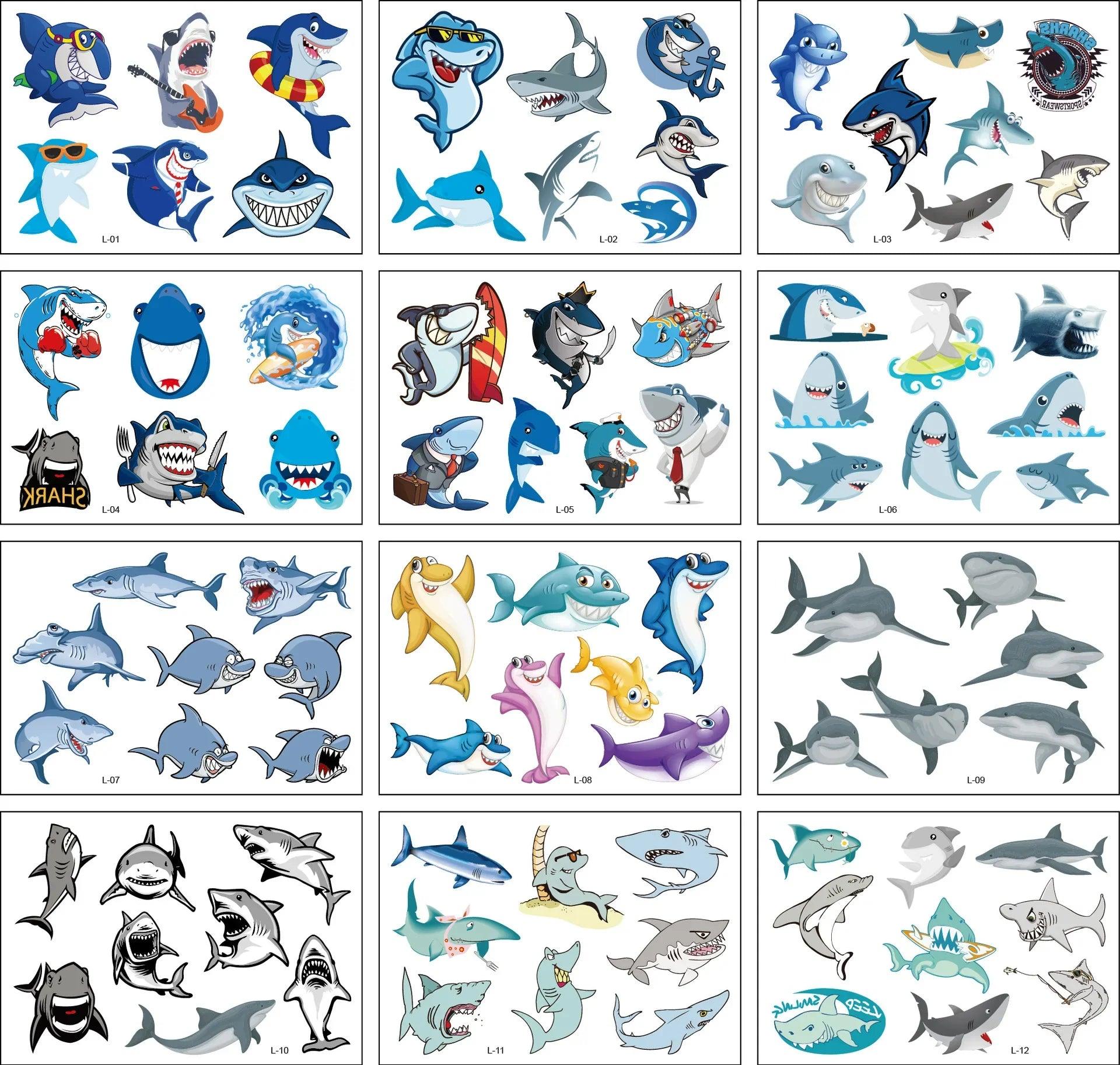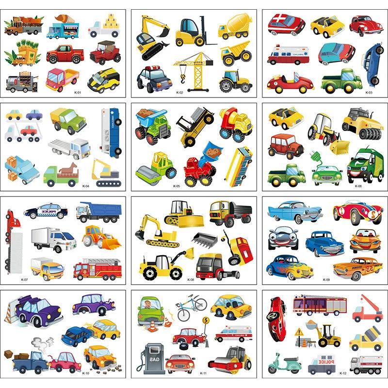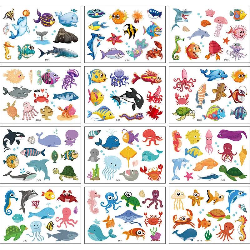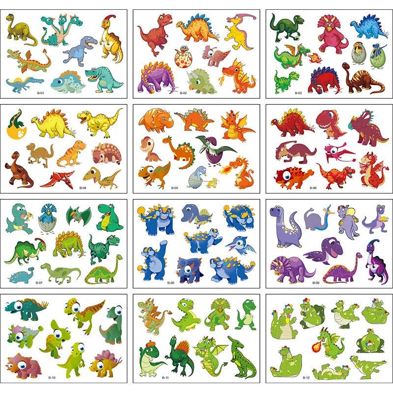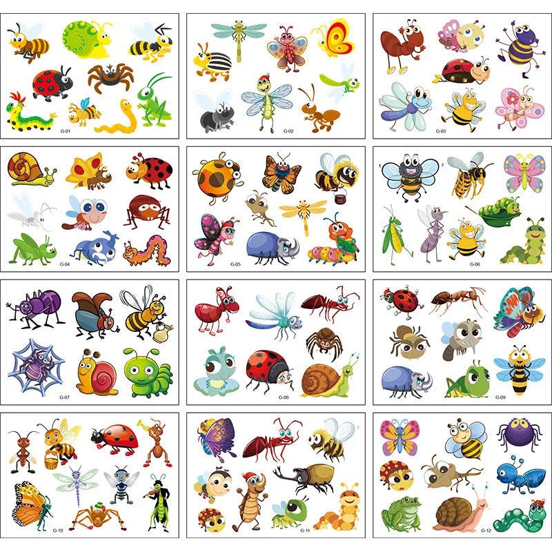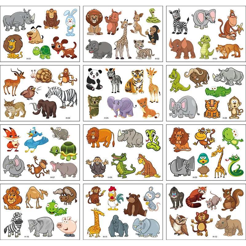 Vibrant Cartoon Kids Temporary Tattoos - 12 Fun Animal Packs