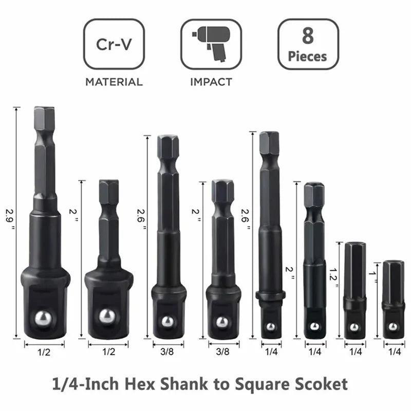 Elevate your metalworking projects with our 12-Piece Impact Socket Adapter Set for Metalworking Use. This versatile toolset transforms your power drill into a powerful nut driver, catering to a wide range of metalworking tasks. Perfect for both DIY enthusiasts and professionals, this set provides the flexibility and efficiency you need.