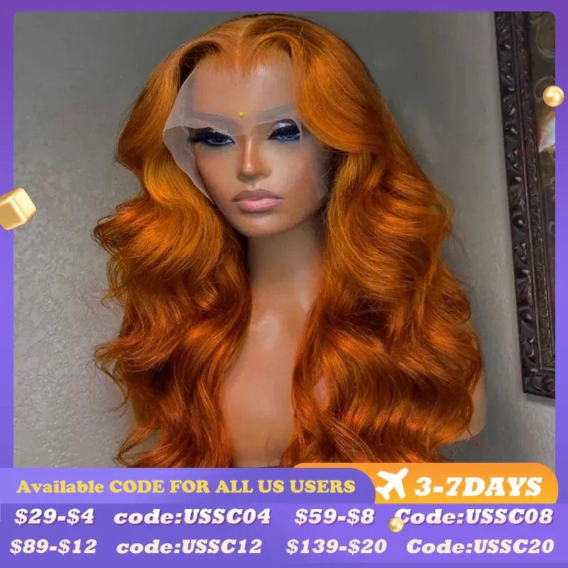 Elevate your hairstyle today with our Ginger Orange Body Wave Lace Frontal Human Hair Wig 13x4—where quality meets style! Order now and embrace the transformation!