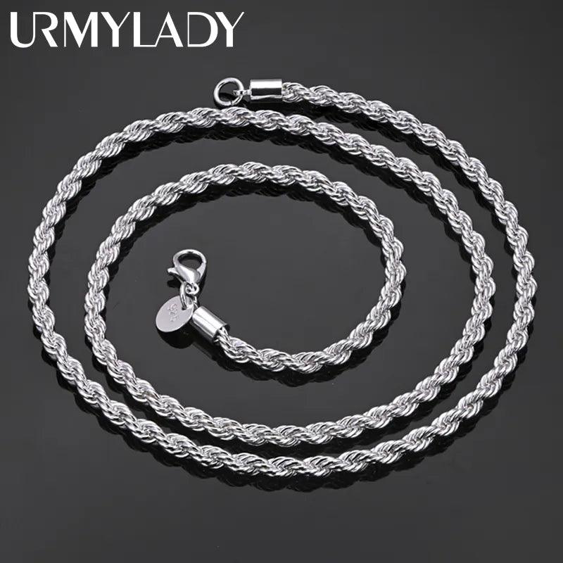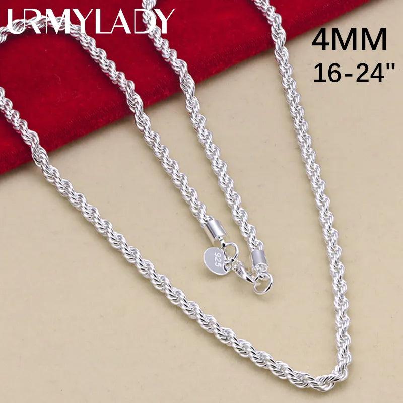 925 Sterling Silver Rope Chain Necklace Elegant Unisex Jewelry
