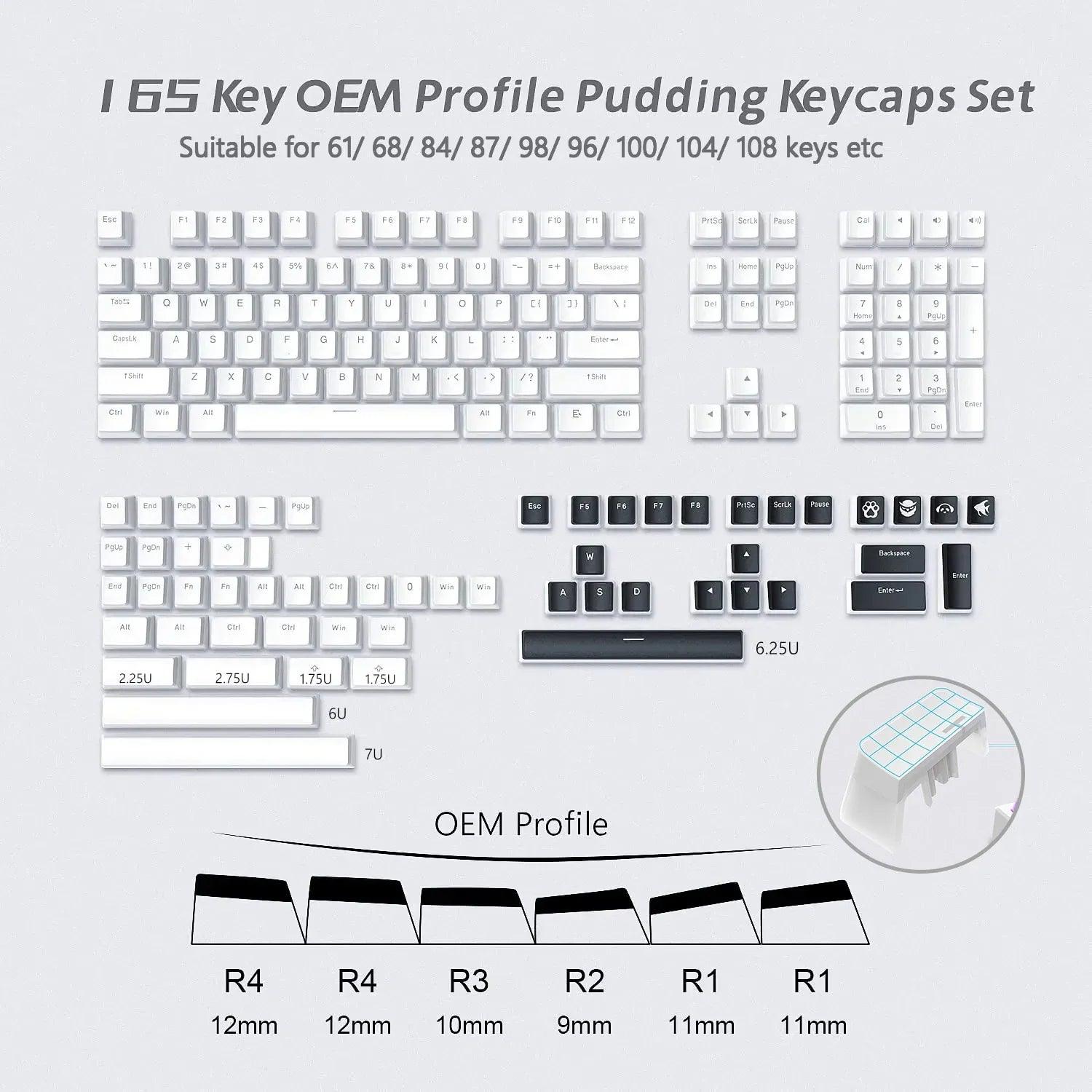 • 165 Key Pudding PBT Double Shot Keycaps: Full keycap set for complete customization.