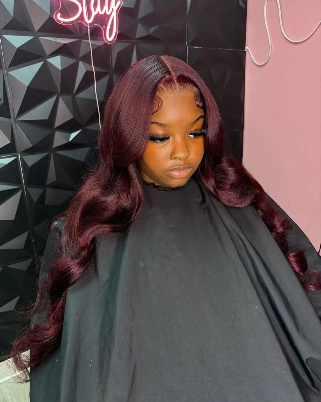 Don't miss out on the opportunity to elevate your hair game. Order now and experience the luxurious beauty of the 16-Inch Burgundy 99J Pre-Plucked Full Lace Curly Bob Wig!