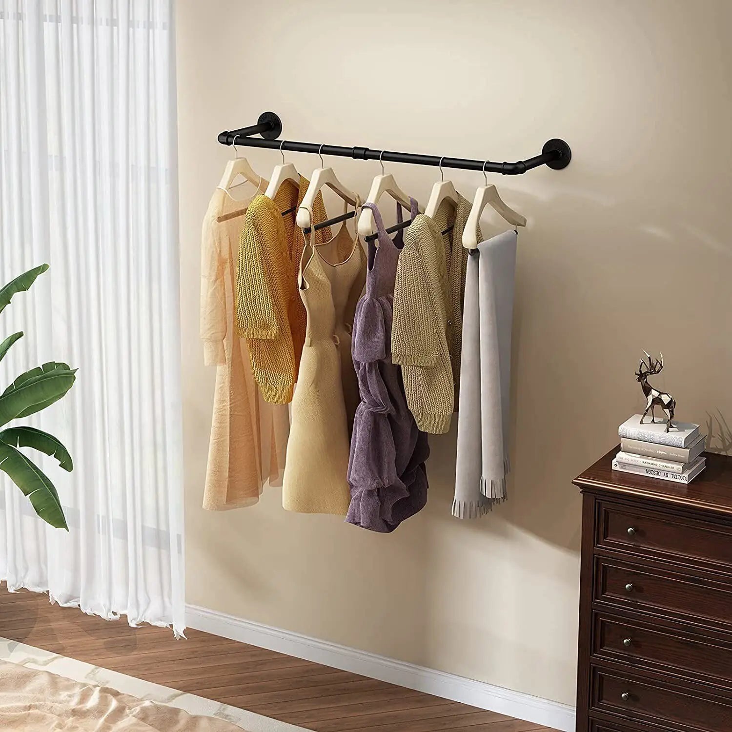 • 1. Industrial Appeal: Crafted with a robust pipe frame and a sleek black finish, this clothes rack exudes an industrial style that complements contemporary decor.