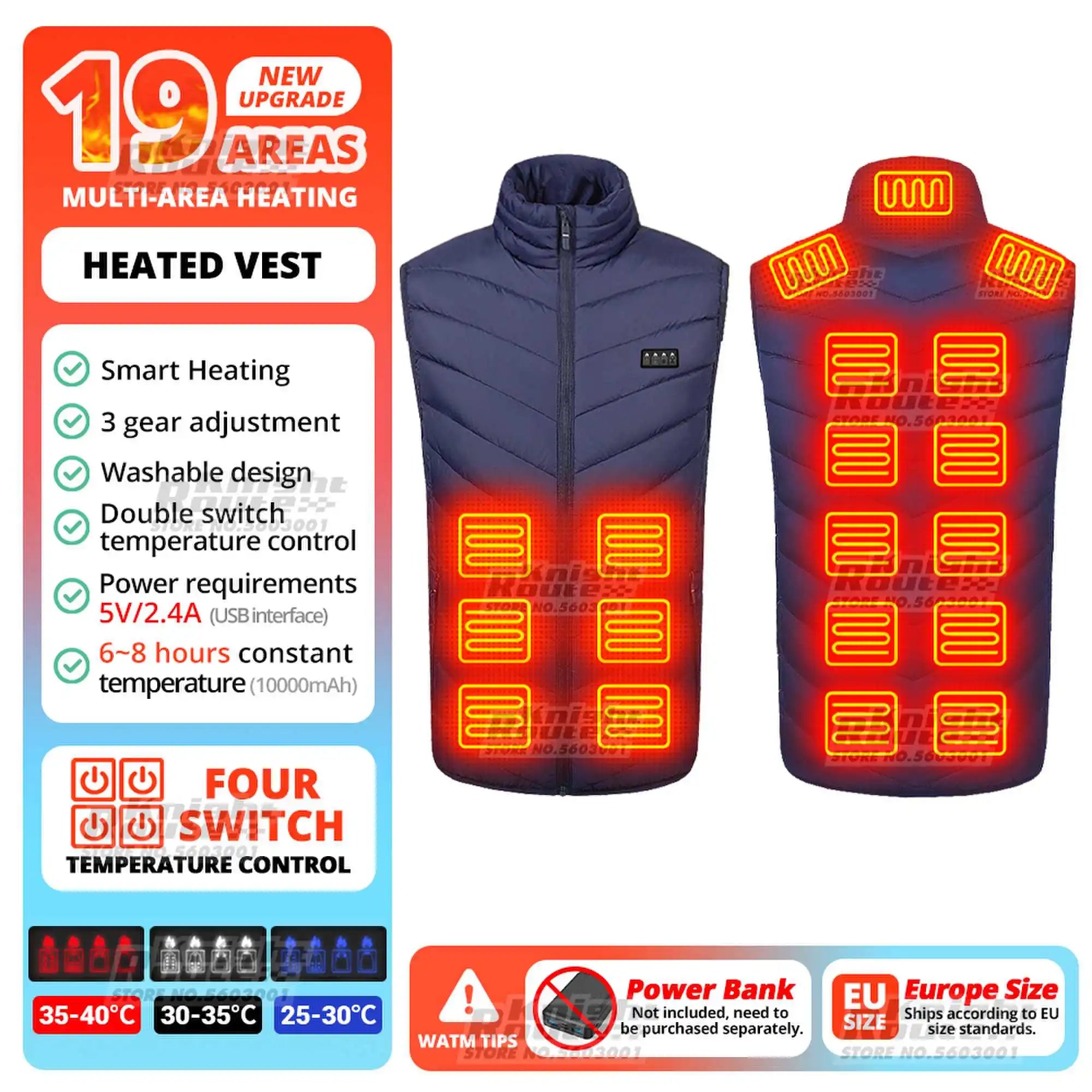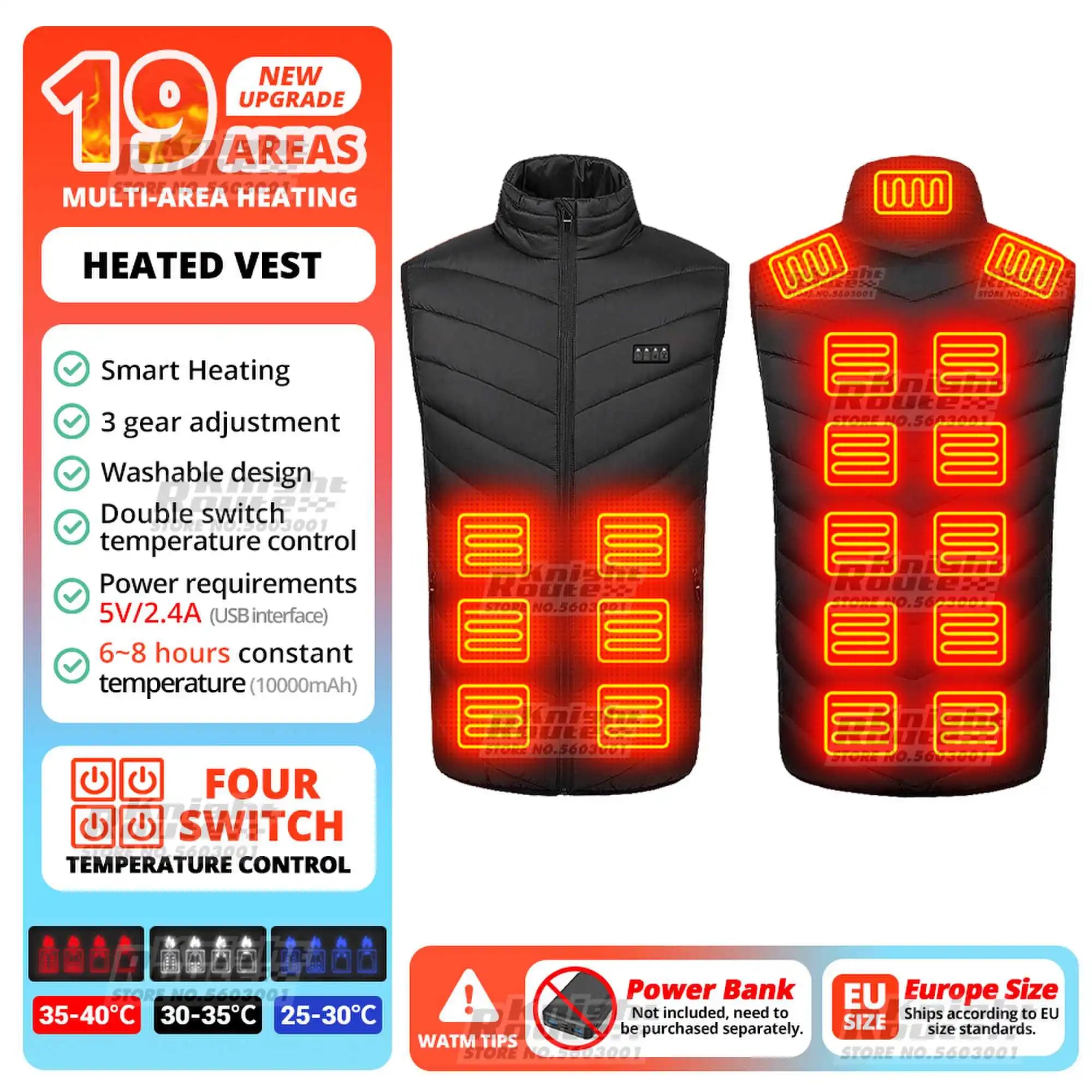 19 Areas Self Heating Vest Men's Thermal Women's USB Heated Vest