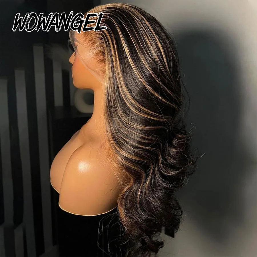 34-Inch 1B27 Highlight Human Hair Wig 13x6 HD Lace Frontal