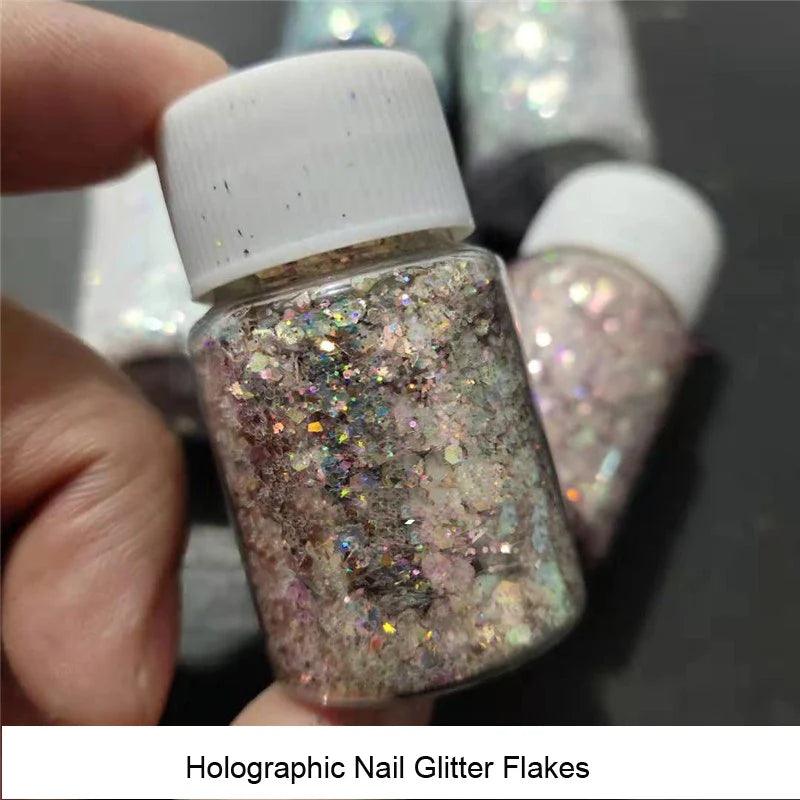 Transform your nails into a mesmerizing masterpiece with our Enchanting Mermaid Holographic Nail Powder DIY Aurora Glitter Dust. This high-quality mica pearl powder is expertly crafted to create dazzling nail designs that captivate and elevate your manicure game. Perfect for any occasion, this glitter dust reveals a stunning spectrum of colors that shift beautifully with light.