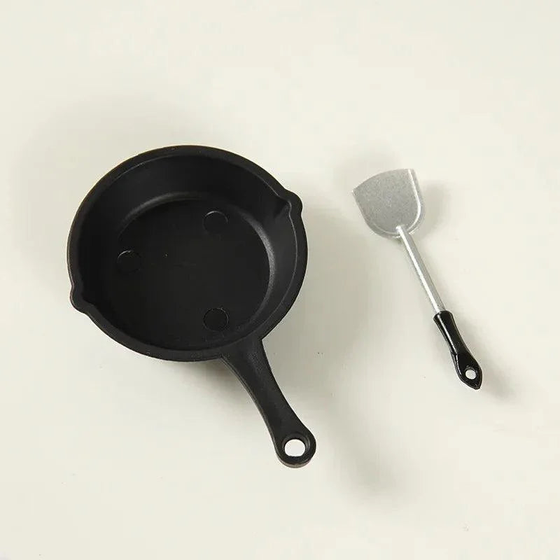 Transform your dollhouse into a culinary paradise with our Miniature 1/12 Dollhouse Fry Pan & Spatula Set Metal Cookware. This delightful cookware set is expertly crafted to enhance the realism of your miniature scenes, bringing both charm and functionality to your dollhouse kitchen.