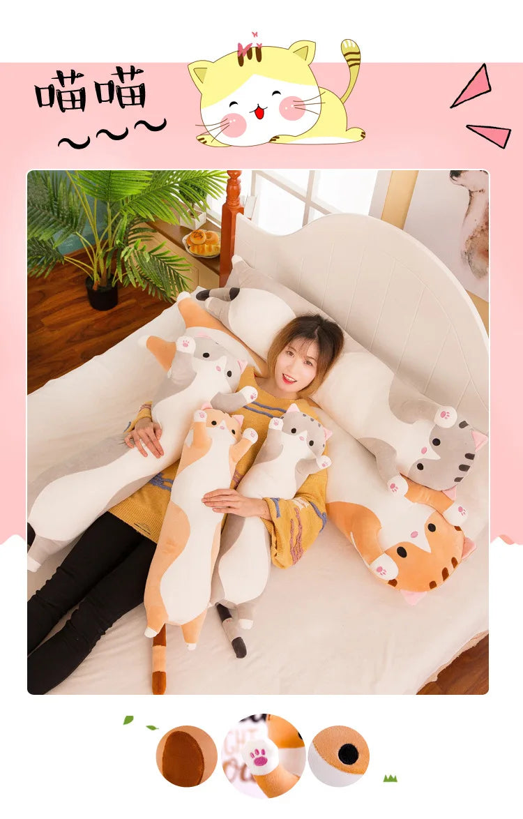 1pc 50-130CM Long Animal Cat Plush Toys Pillows for Comfort