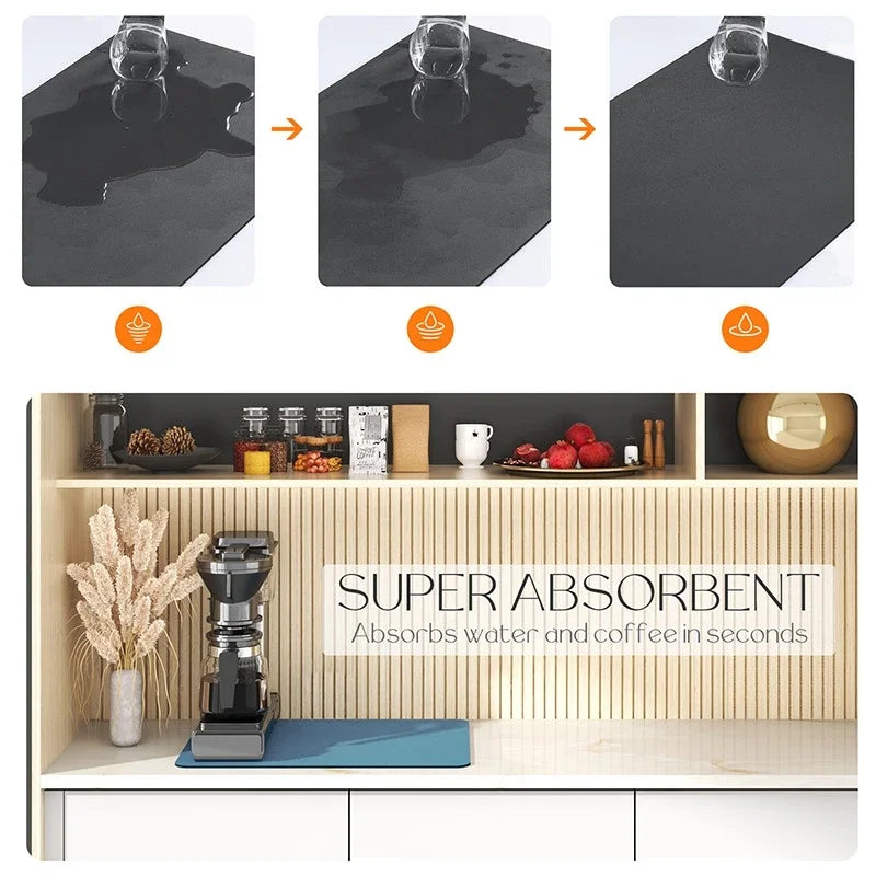 • Superior Absorbency: Crafted from high-quality microfiber, this mat absorbs water, coffee, and other liquids quickly, ensuring your countertops remain tidy.