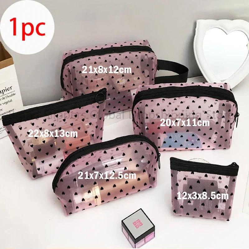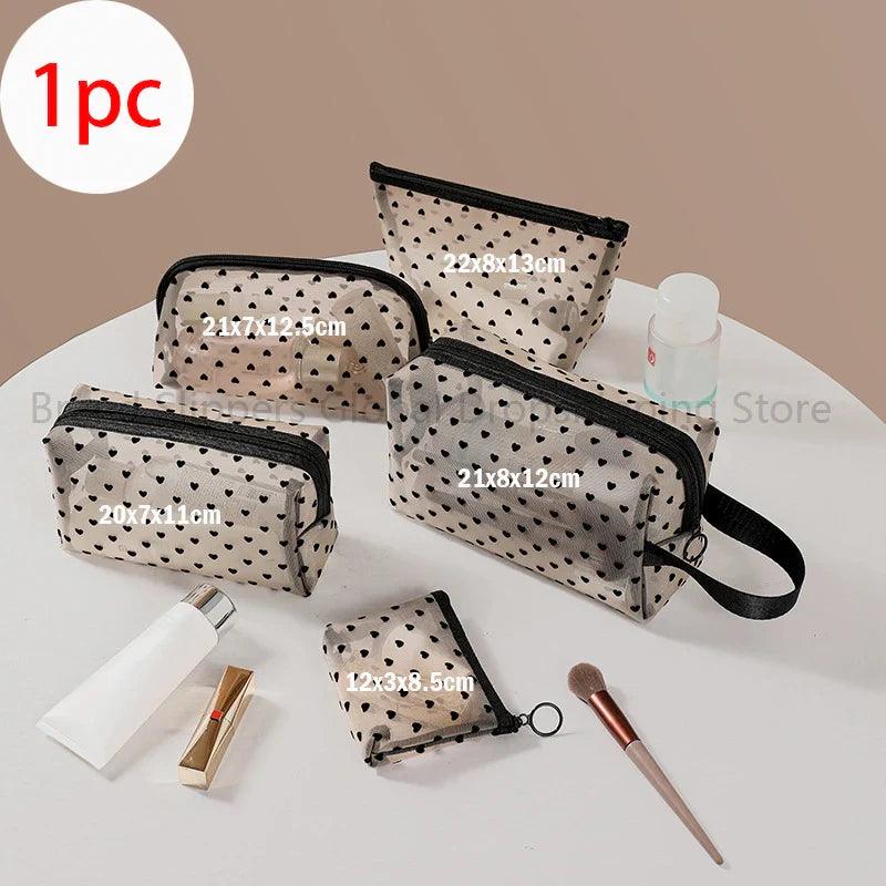 Love Print Mesh Cosmetic Bag: Stylish Organizer for Women