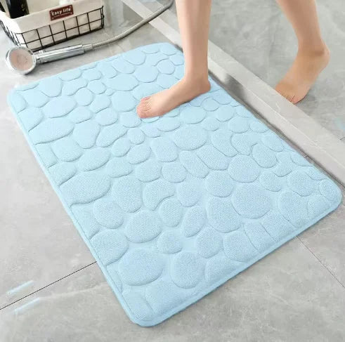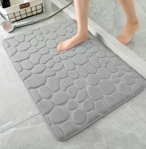 1pc Memory Foam Embossed Velvet Non-Slip Cobblestone Mat