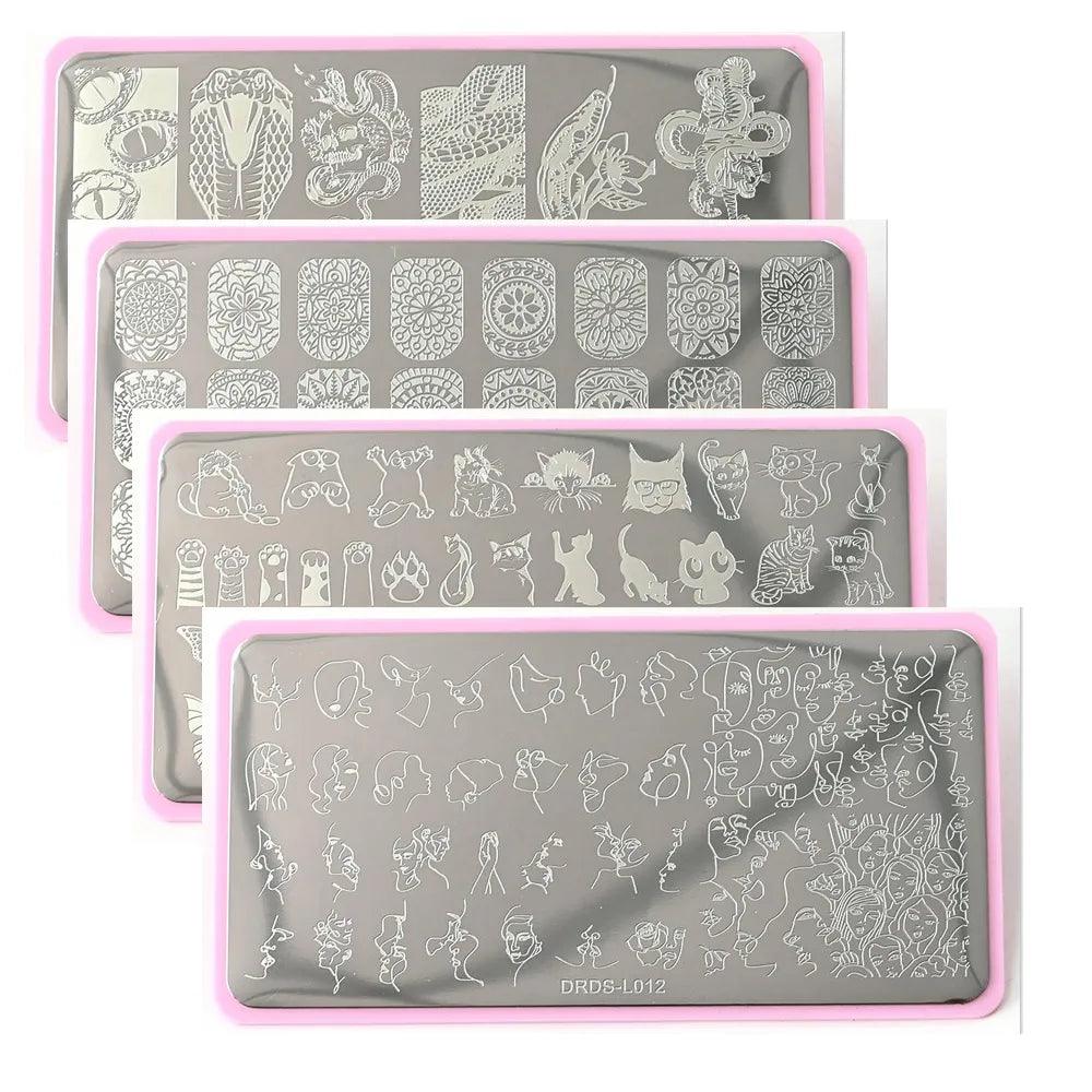 The Elegance & Serpent Nail Art Stencils Bundle Steel Designs allows you to easily achieve stunning nail designs. Simply use your favorite stamping polish for a flawless finish. Whether you're a novice or a seasoned artist, this bundle opens the door to endless creative nail ideas.