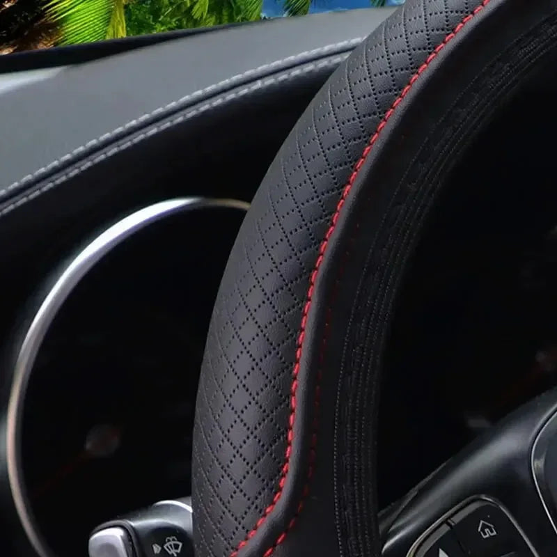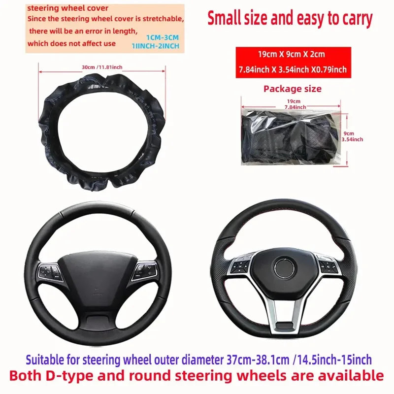 This steering wheel cover is not only functional but also serves as a stylish enhancement to your car's interior. It boosts driving comfort, especially on long journeys, while reflecting your unique taste. No matter the season, the artificial leather ensures a comfortable grip, keeping you confident and in control.
