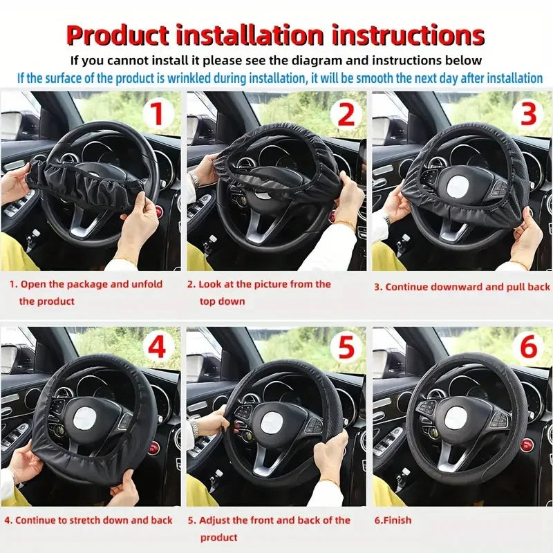 Installing the Steering Wheel Cover (14.5-15 Inches) is a breeze. Simply stretch the cover over your steering wheel and adjust until it fits perfectly. For upkeep, a quick wipe with a soft cloth will keep it looking new, extending its lifespan and performance.