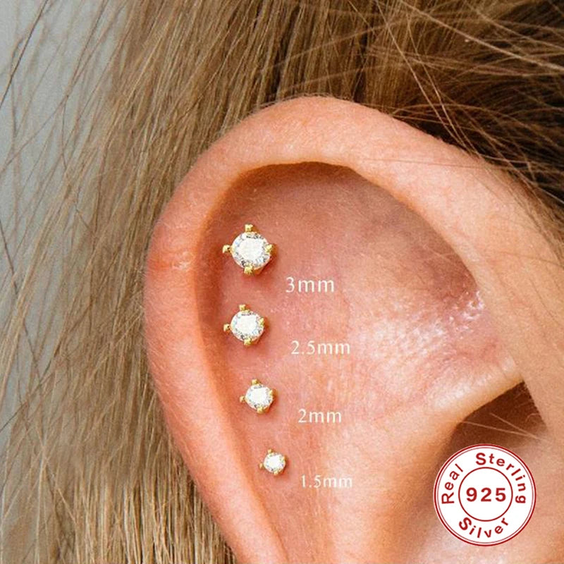 1PCS Piercing Earrings 925 Sterling Silver Stud Earring Bling Zircon