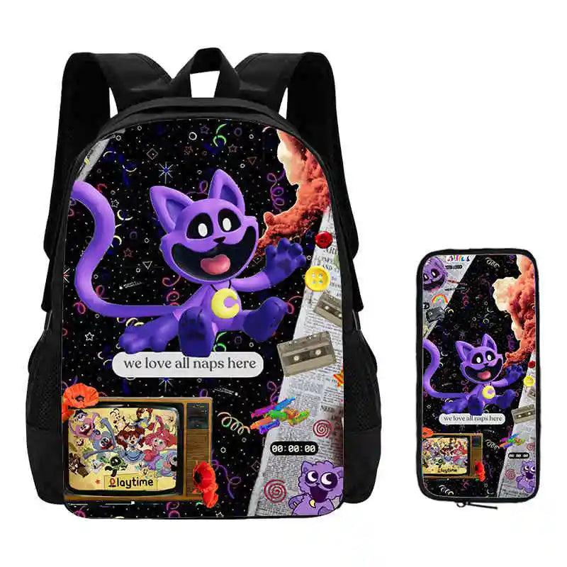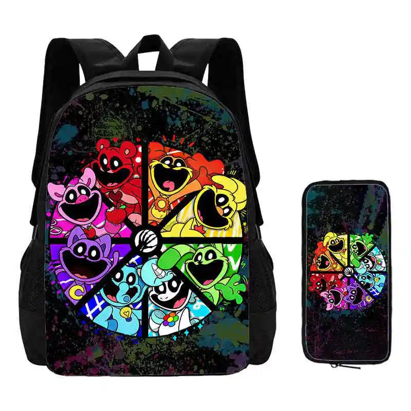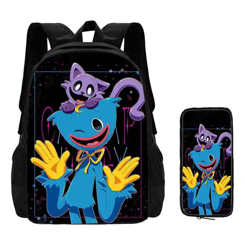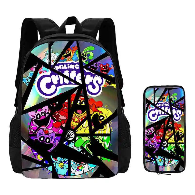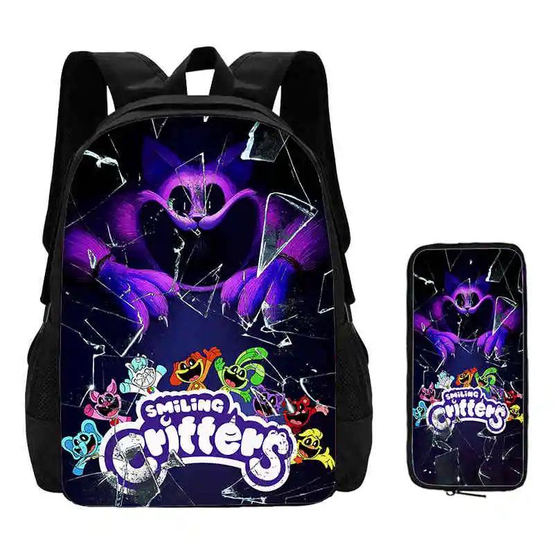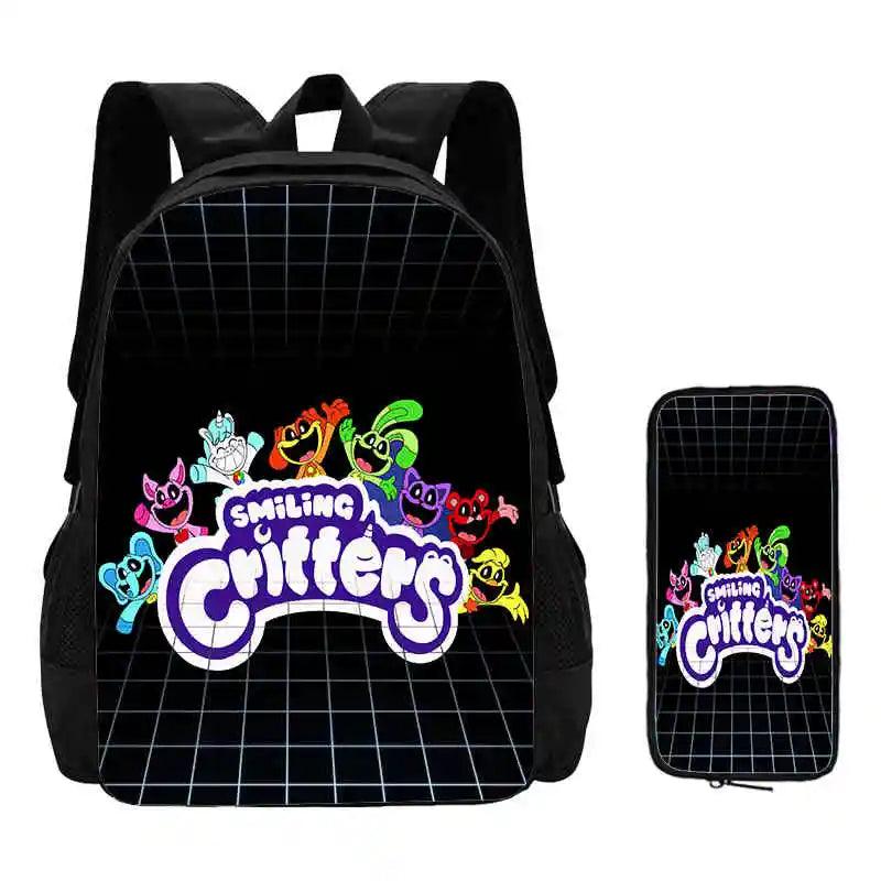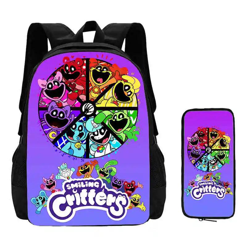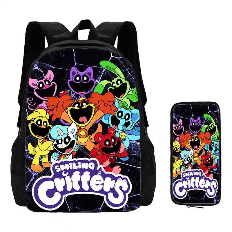 2 Pcs Set Smiling Anime Critters Backpack With Pencil Bags