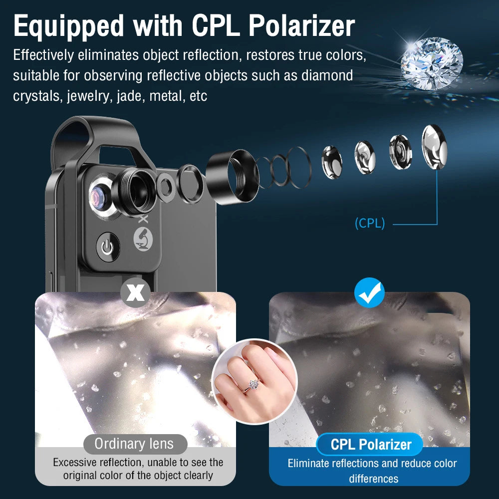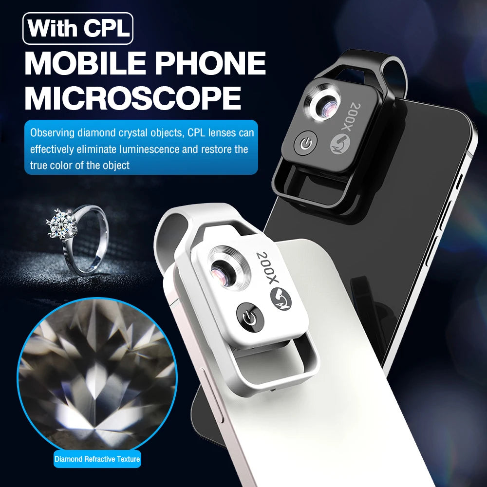 200X Magnification Microscope Lens with CPL Mobile LED Light