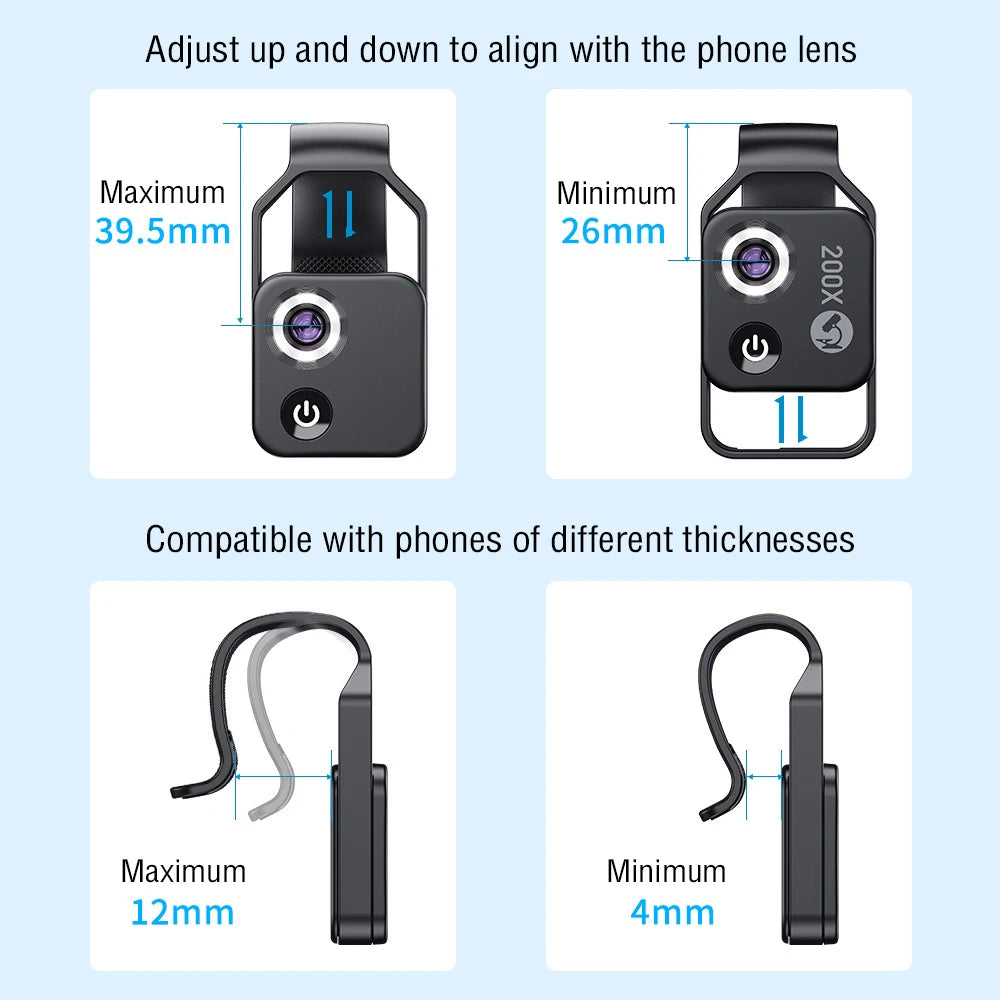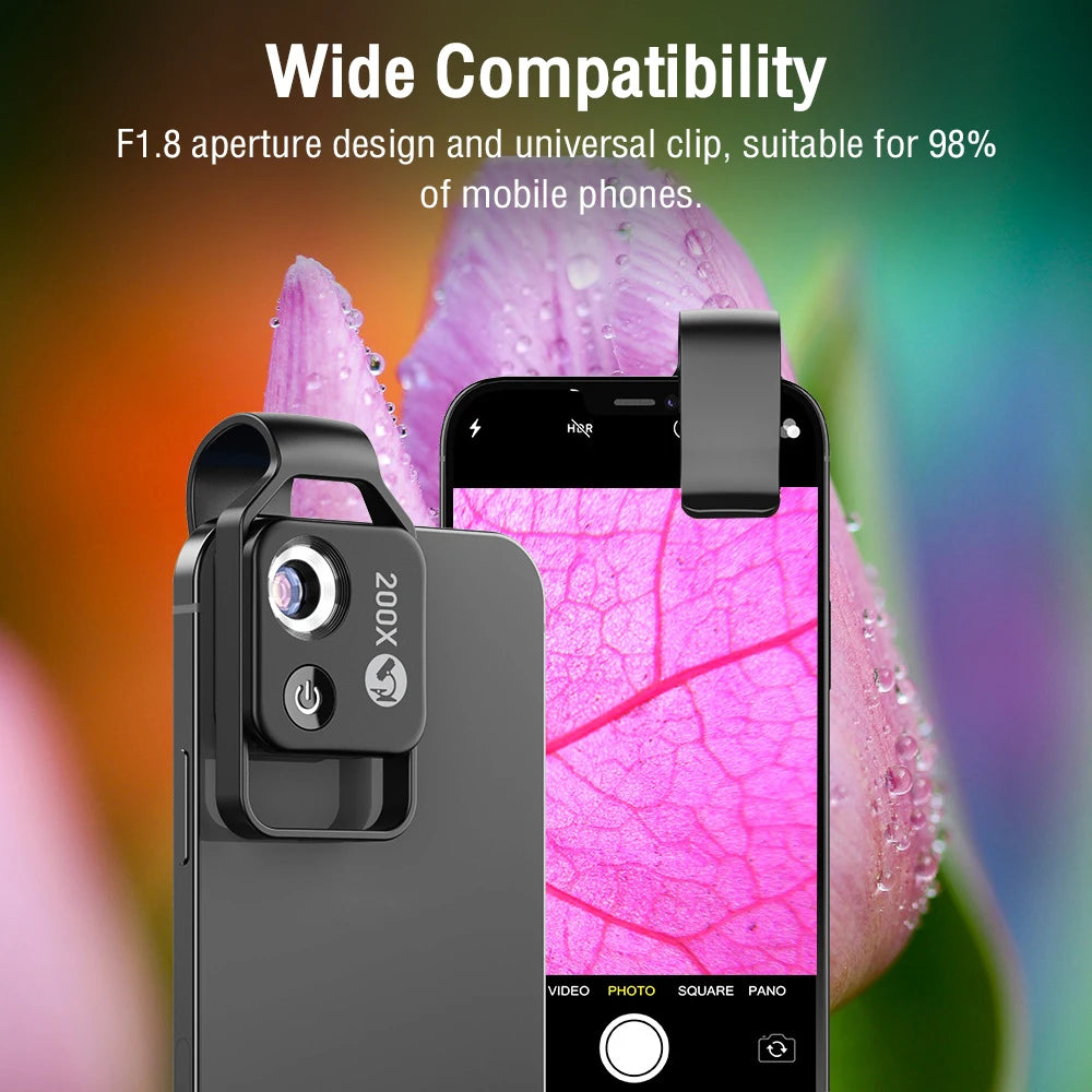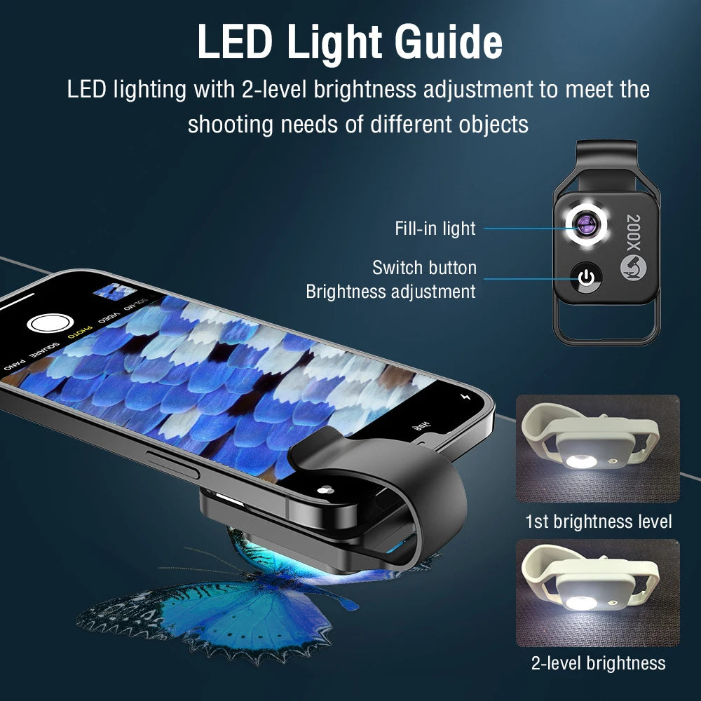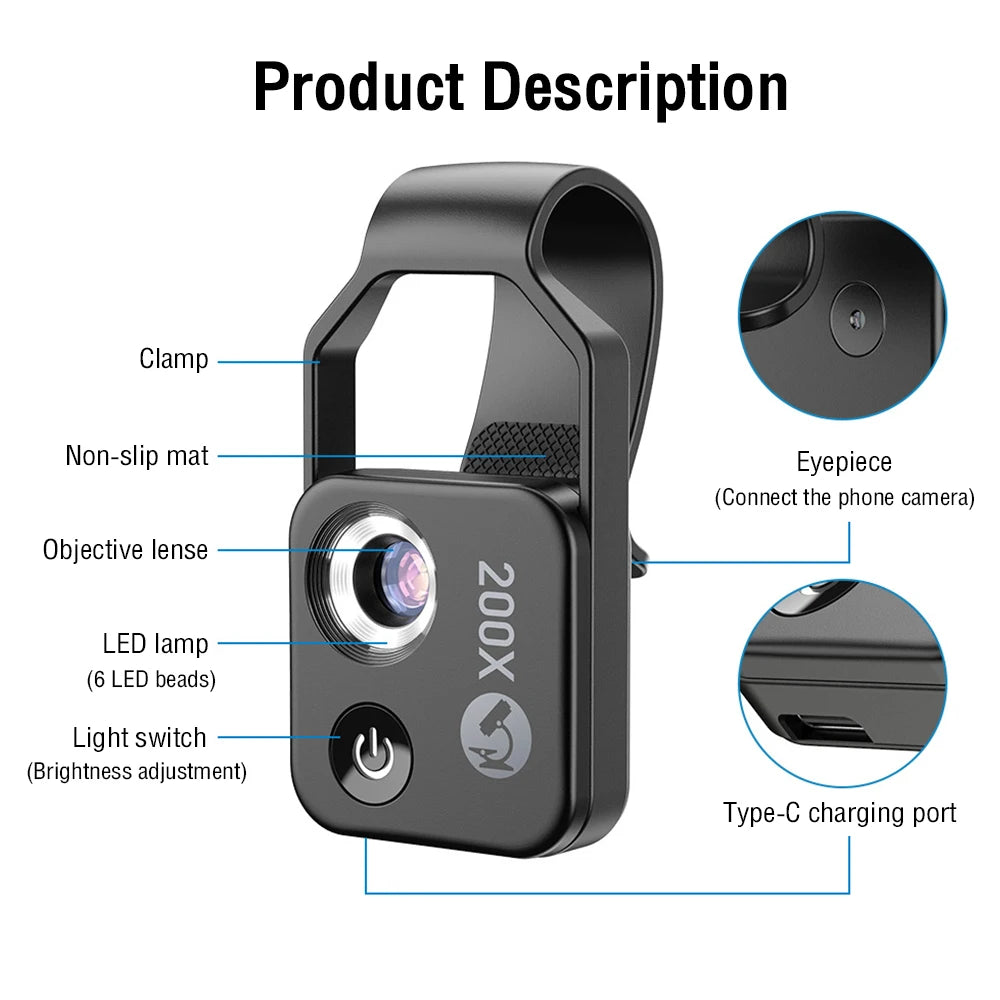 Explore the Micro World with the 200X Magnification Microscope Lens with CPL Mobile LED Light