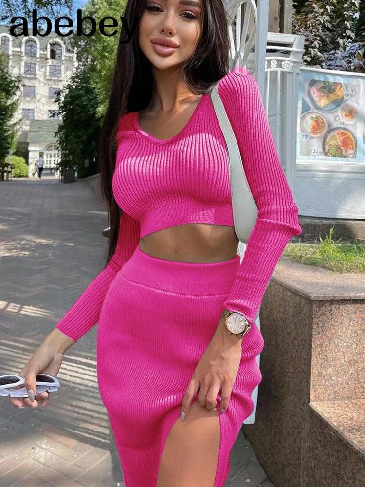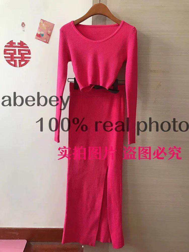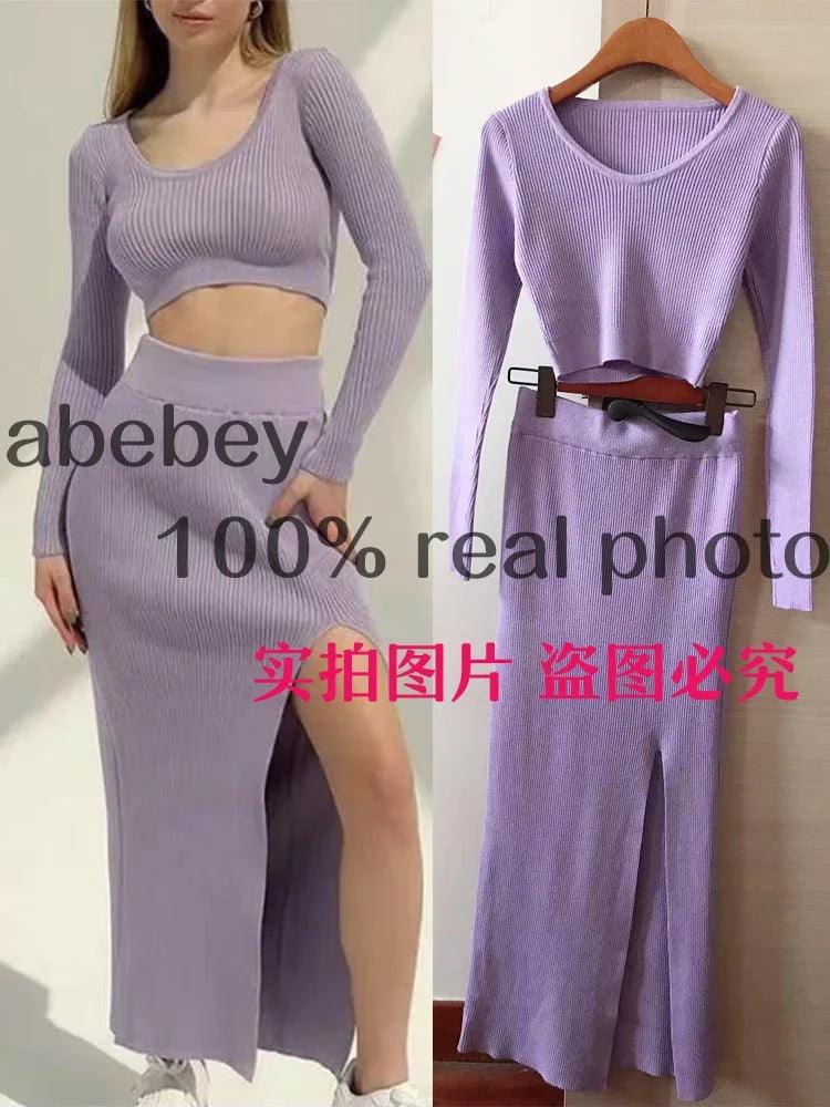 Knitted Winter Sexy Sweater Skirt Suit Cozy Y2K Style Set