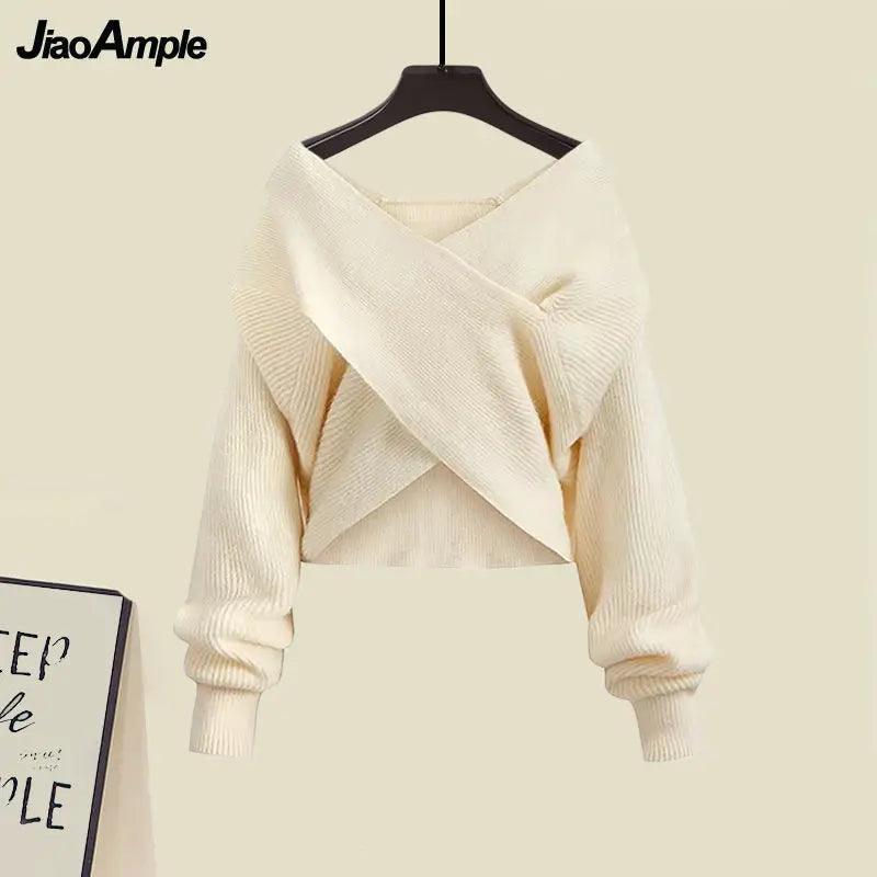 Introducing the Elegant Korean Women's Cross Knit Three-Piece Suit Autumn Chic—your new go-to outfit for the crisp fall and winter months. This stunning ensemble by JiaoAmple combines unparalleled style with functionality, ensuring you look chic and feel comfortable no matter the occasion.