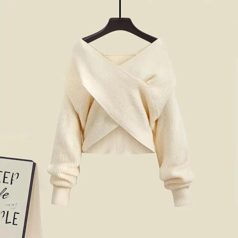 Crafted with care and precision, this suit embodies the essence of elegance. Don't miss out on this opportunity to enhance your autumn wardrobe with the Elegant Korean Women's Cross Knit Three-Piece Suit Autumn Chic.