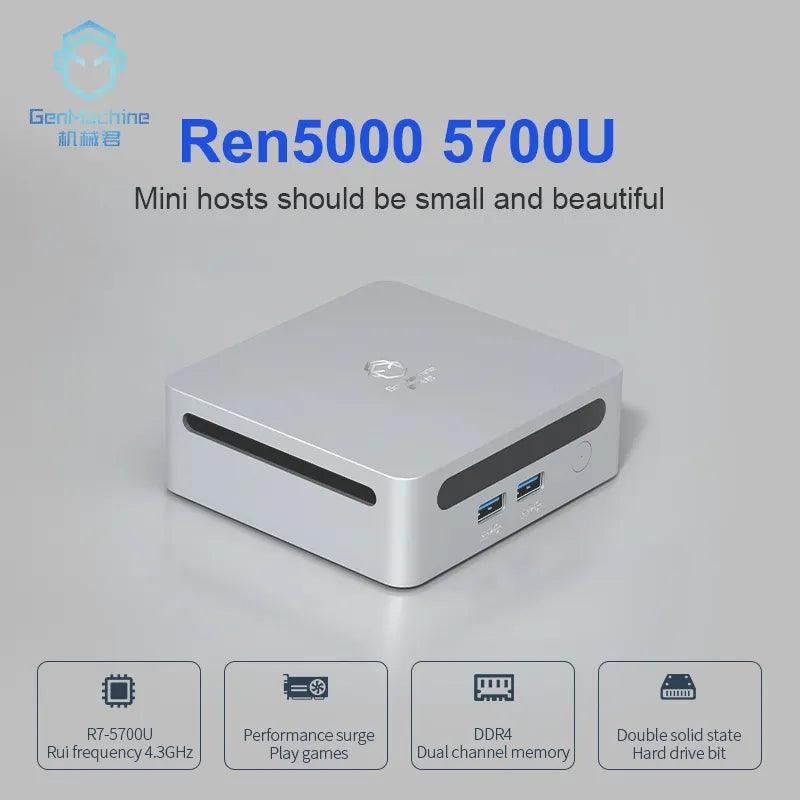 Introducing the GenMachine Mini PC Ren5000 Ultimate Performance Desktop PC, your perfect blend of power and efficiency. Designed for professionals, gamers, and casual users alike, this mini PC is equipped with an AMD Ryzen7 5700U CPU that delivers lightning-fast performance for multitasking, creative projects, and gaming.