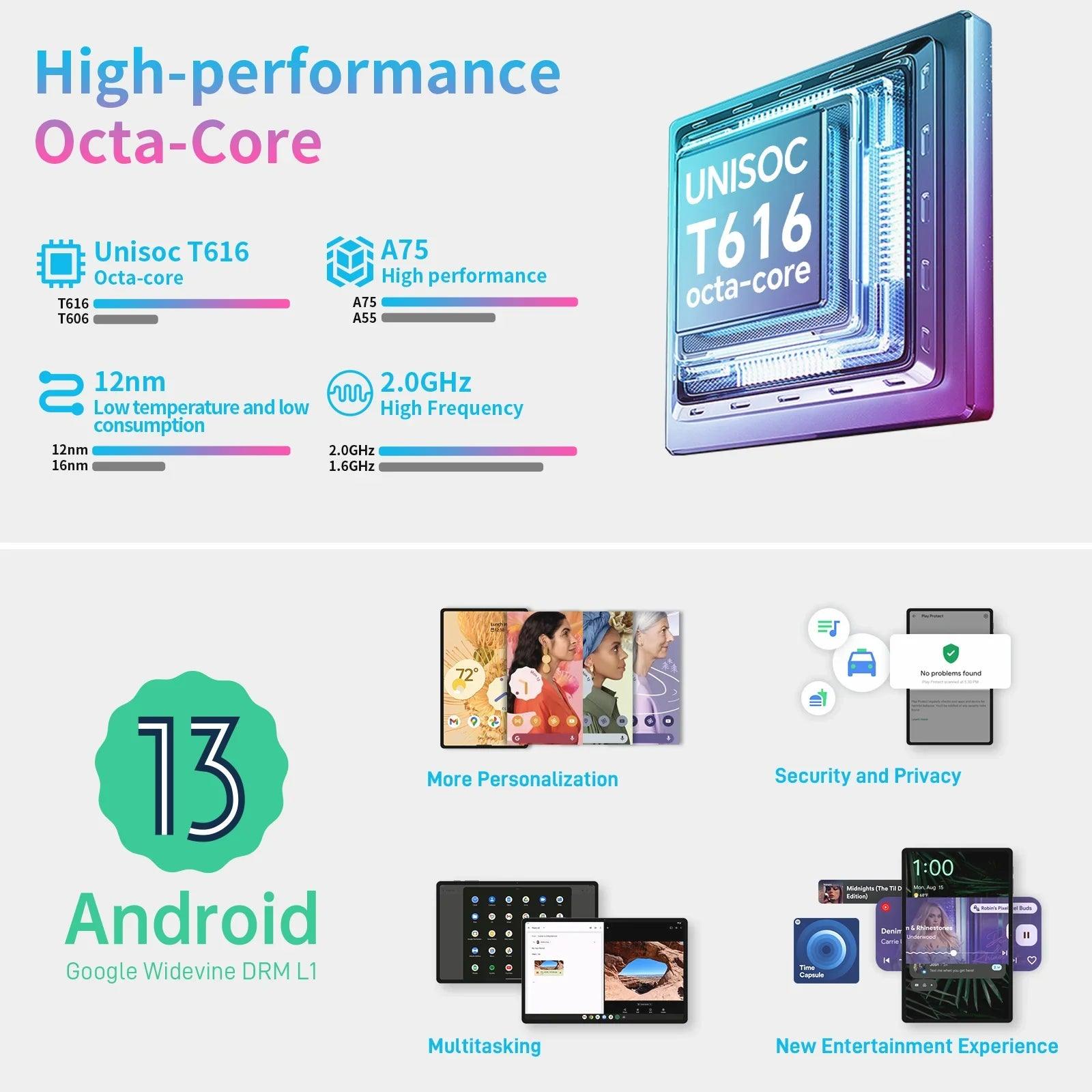 • UNISOC T616 Processor: Efficient performance for all your multitasking needs. 8. UNISOC T616 Processor
