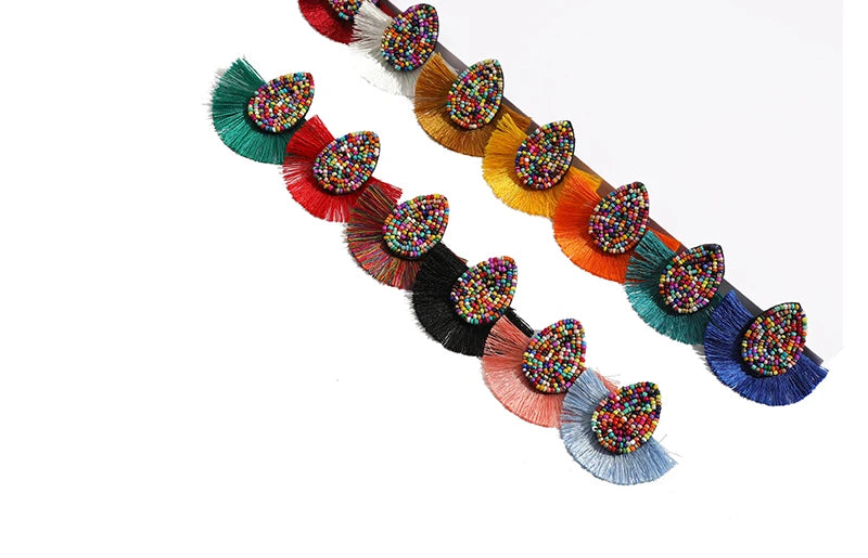 2024 Fringe Tassel Earrings For Women Colorful Beaded Boho Statement Jewelry