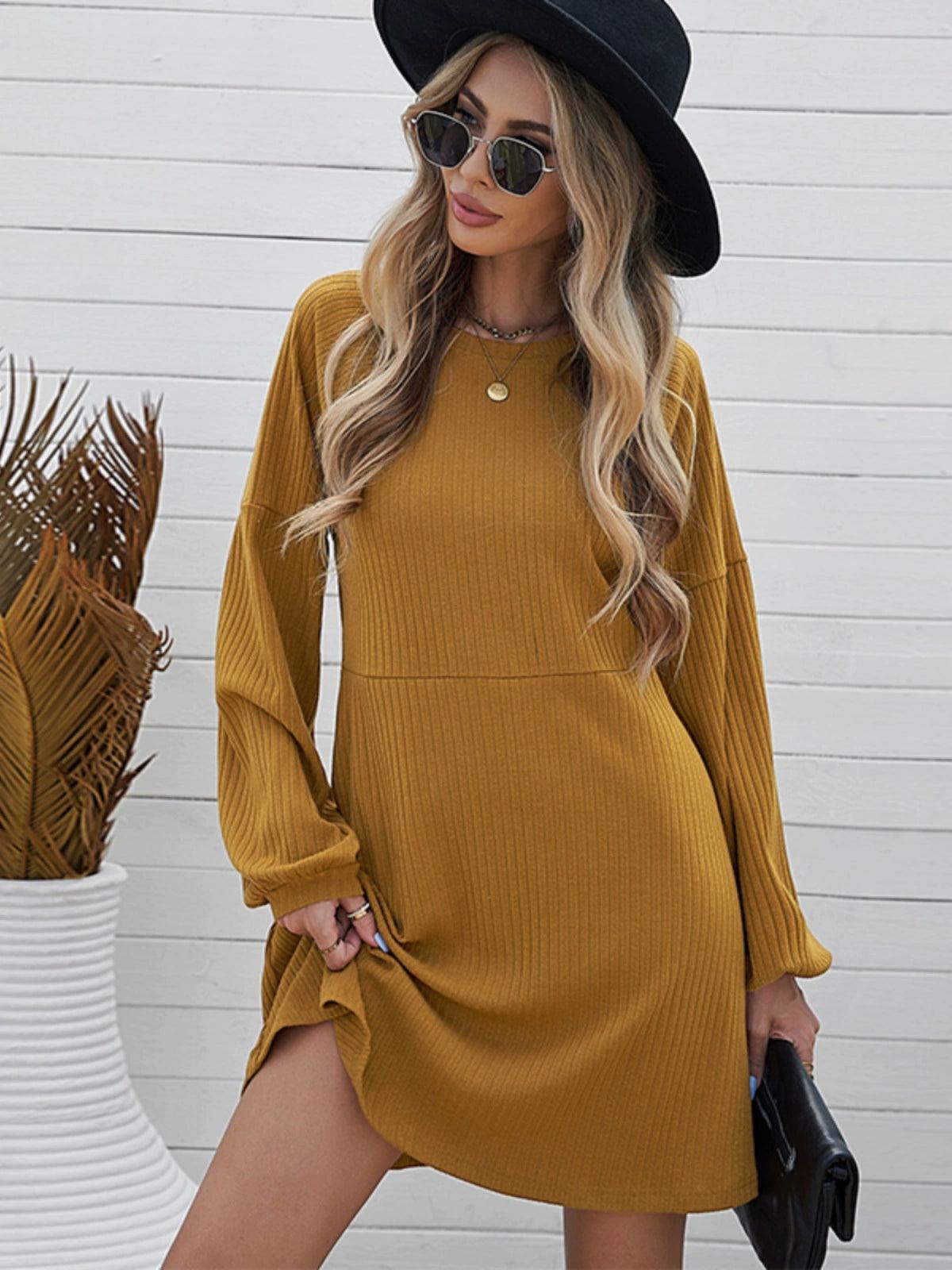 Crafted from a high-quality blend of polyester and spandex, this dress offers a loose fit that drapes beautifully and a cozy feel perfect for chilly days. Whether you're heading to a casual lunch or an evening gathering, you’ll feel comfortable and confident.