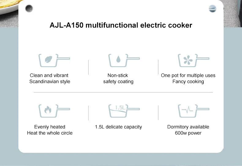 Streamline your kitchen and enjoy the convenience that the Portable 1.5L Multi-Function Pot Rice Cooker brings. Say goodbye to clutter and hello to easy meal prep!