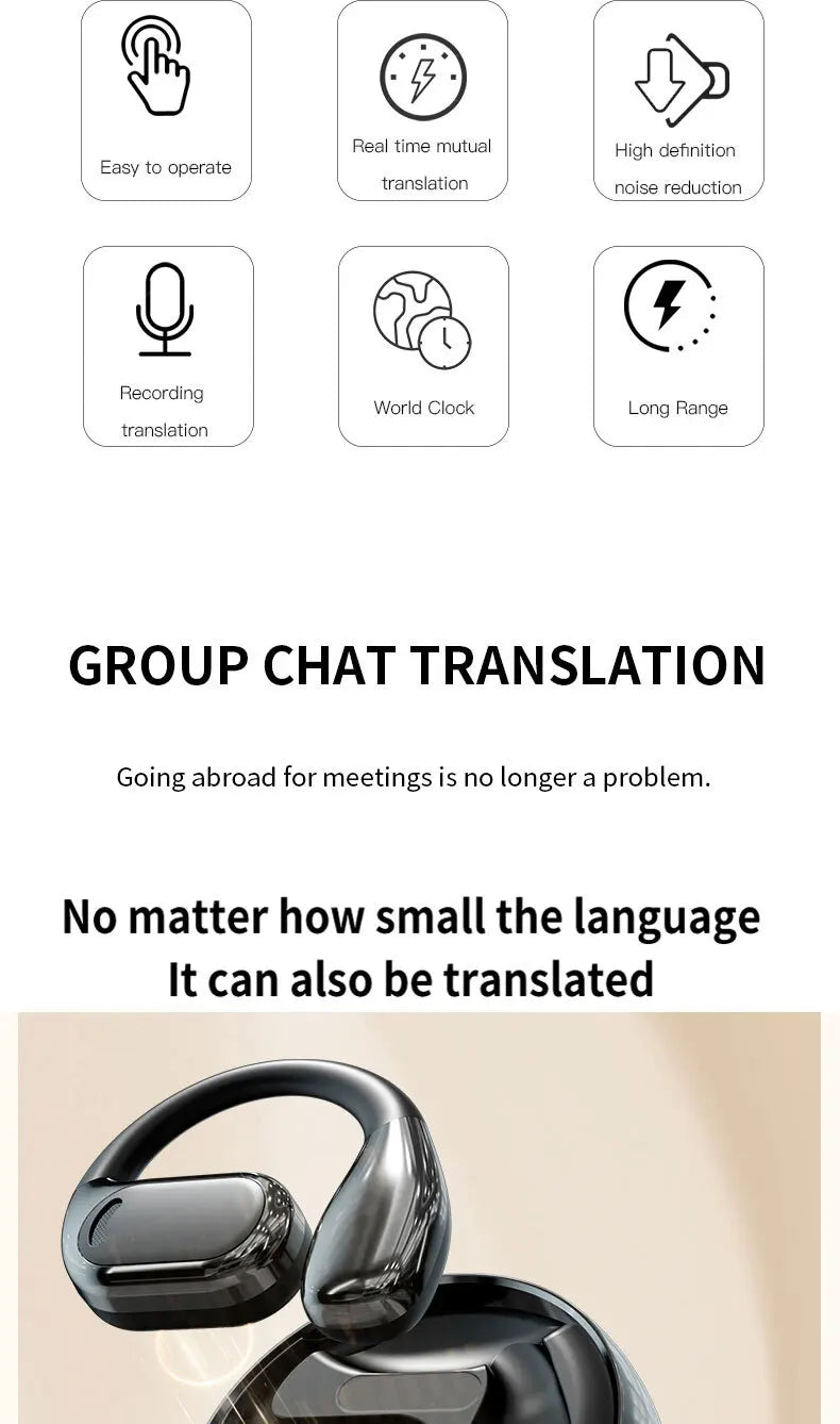 Experience the future of communication with the 2025 New AI Translation Earbuds OWS Non In Ear Bluetooth 5.4. These innovative earbuds are designed to bridge language gaps effortlessly, providing unparalleled audio quality and functionality.