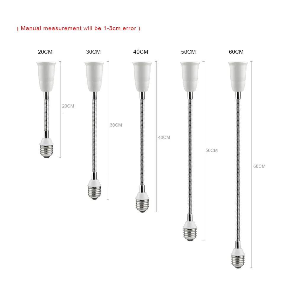 Transform your lighting experience with the Illuminate Your Space with Flexible E27 LED Bulb Holder. This innovative holder extends the reach of your E27 light bulbs, allowing you to customize your lighting setup effortlessly. It's available in various lengths—20CM, 30CM, 40CM, 50CM, and 60CM—ensuring a perfect fit for any space.