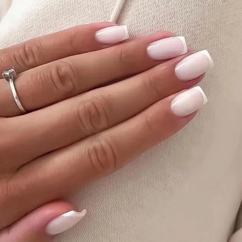 Discover the perfect blend of convenience and sophistication with our French False Nails Chic Nude White Short Square Tips Glue. Our set of 24 short square tips provides:
