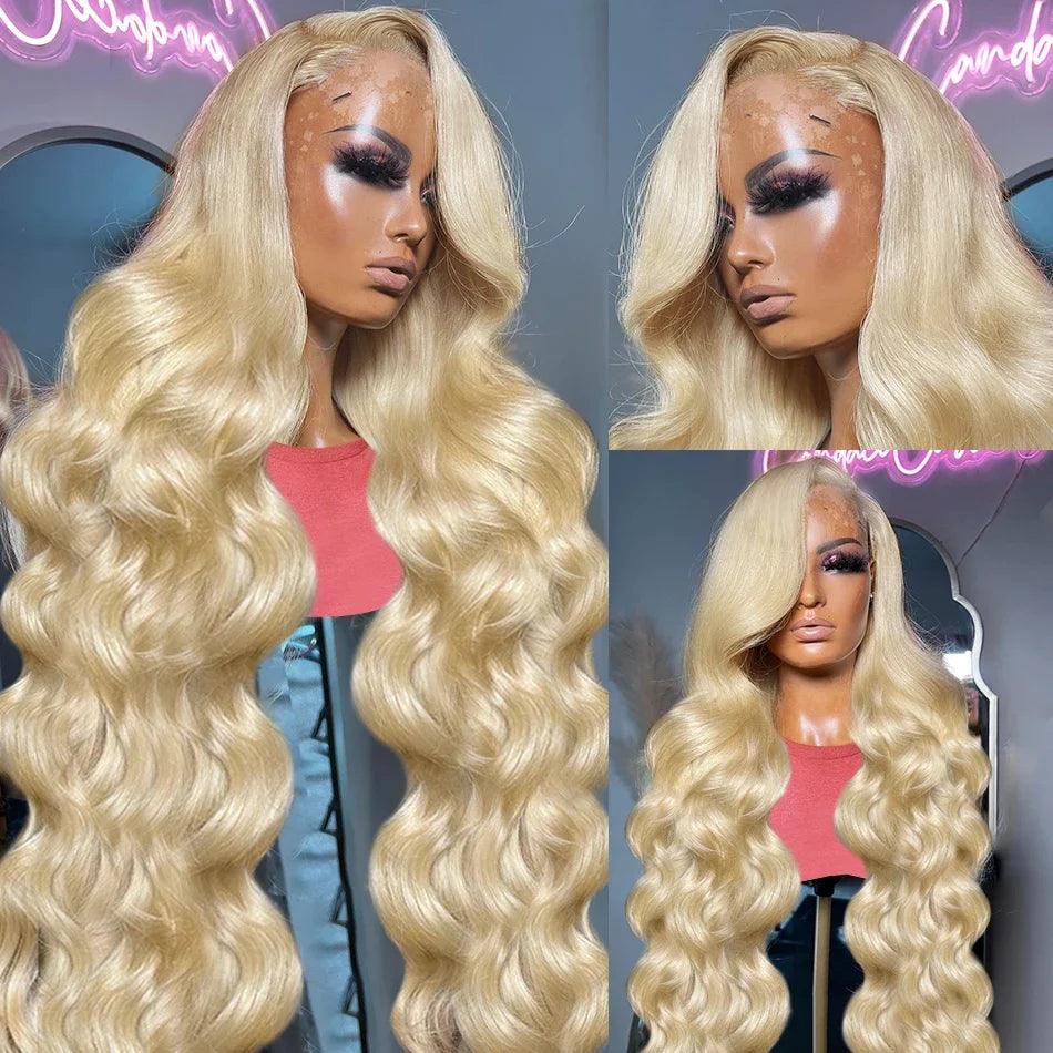 38 Inch 250% Density Body Wave Lace Frontal Wig 613 Blonde