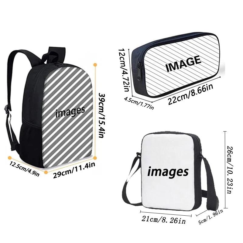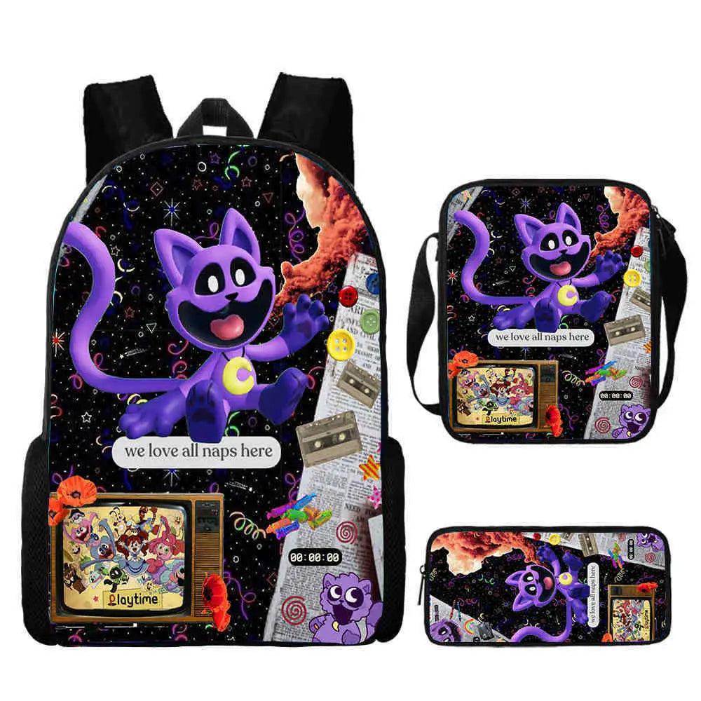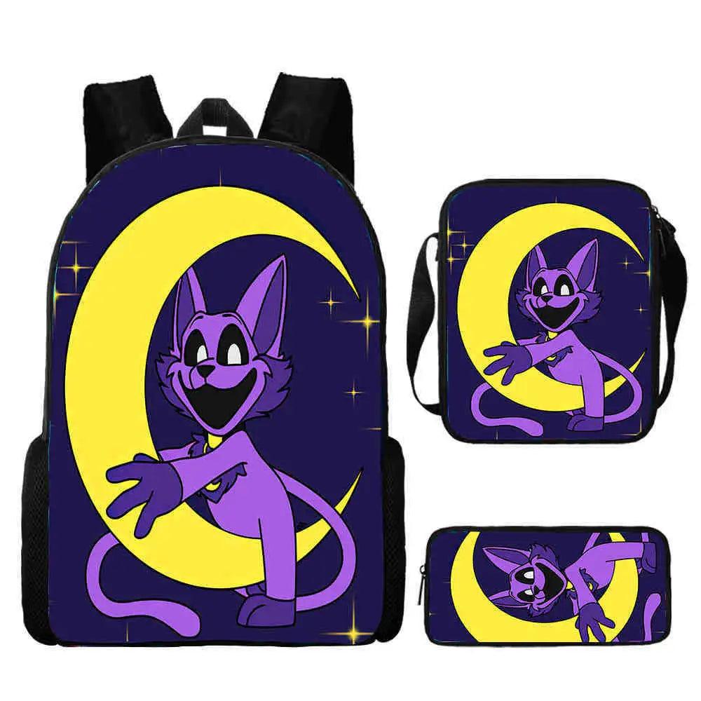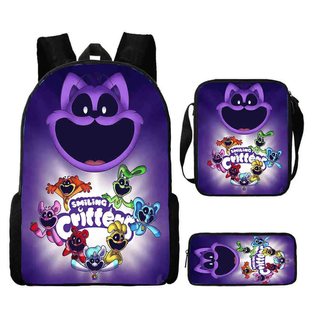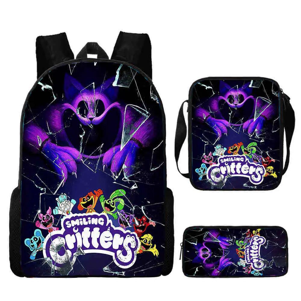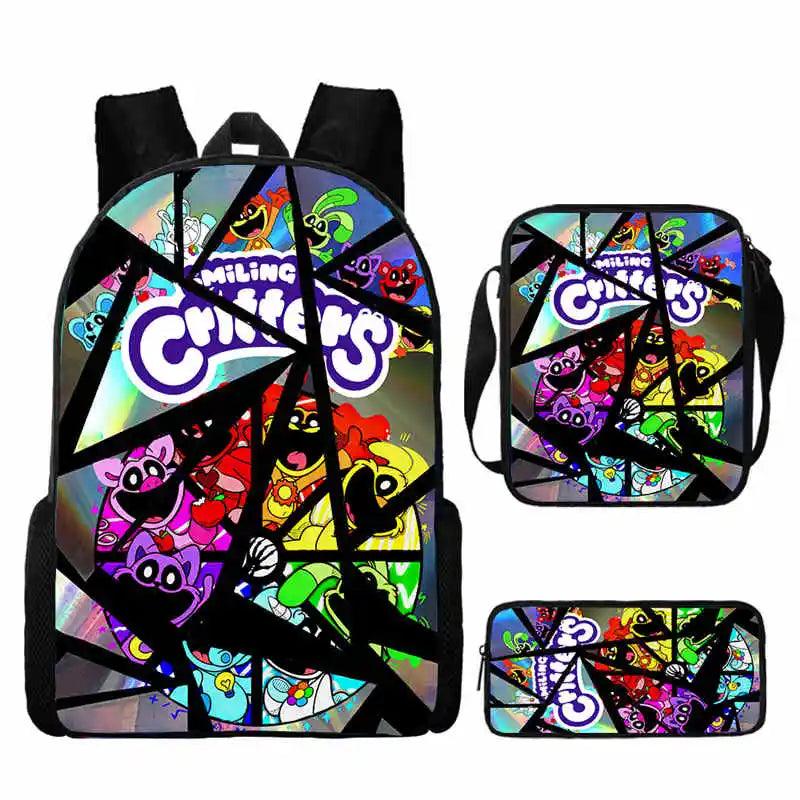 3 Pcs Set Smiling Anime Critters School Bags for Kids