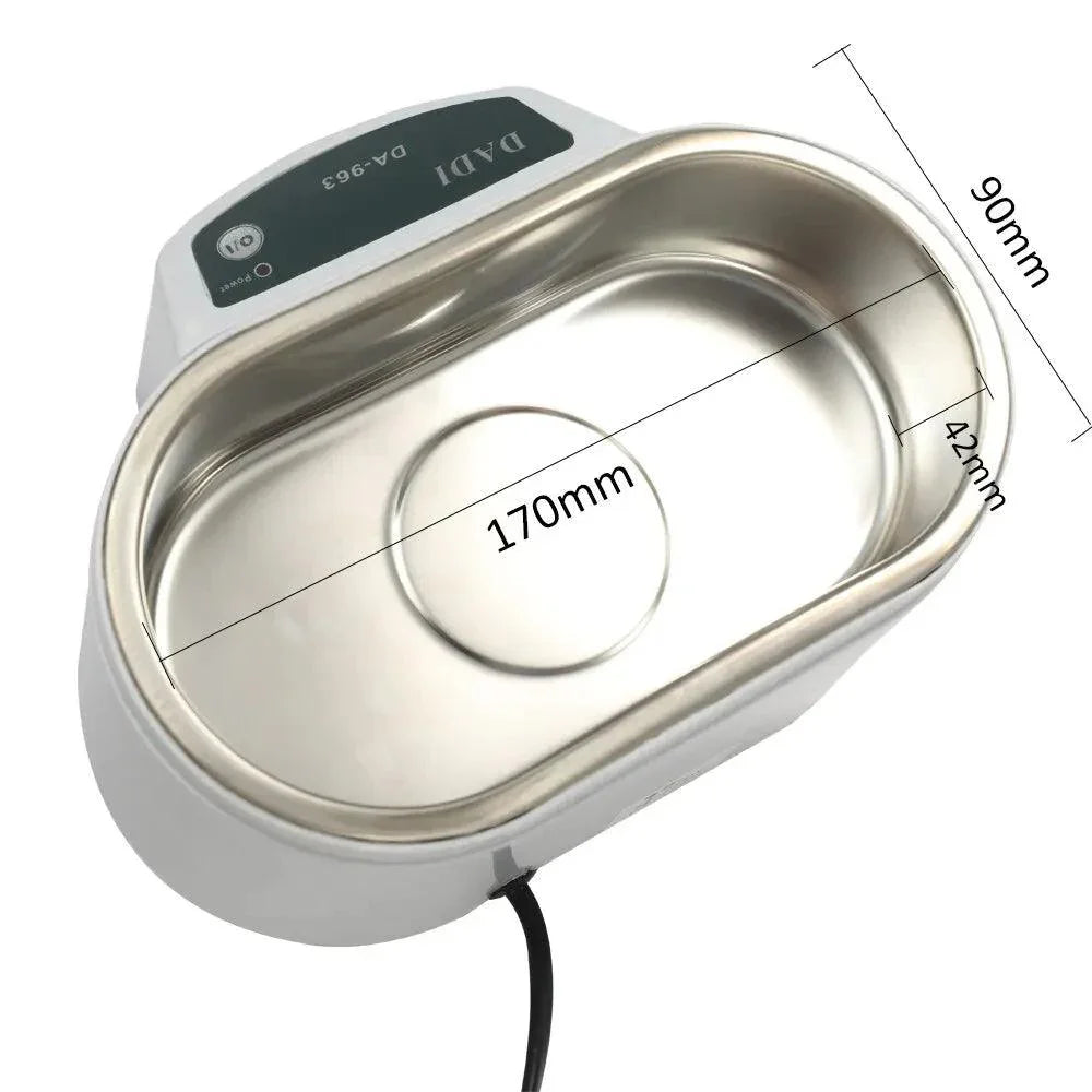 A: The stainless steel cover helps dampen sound, and the unit’s compact design contributes to a quieter experience. For a home or office, this means you can run cycles without disruption while enjoying the benefits of a high-performance ultrasonic cleaner.