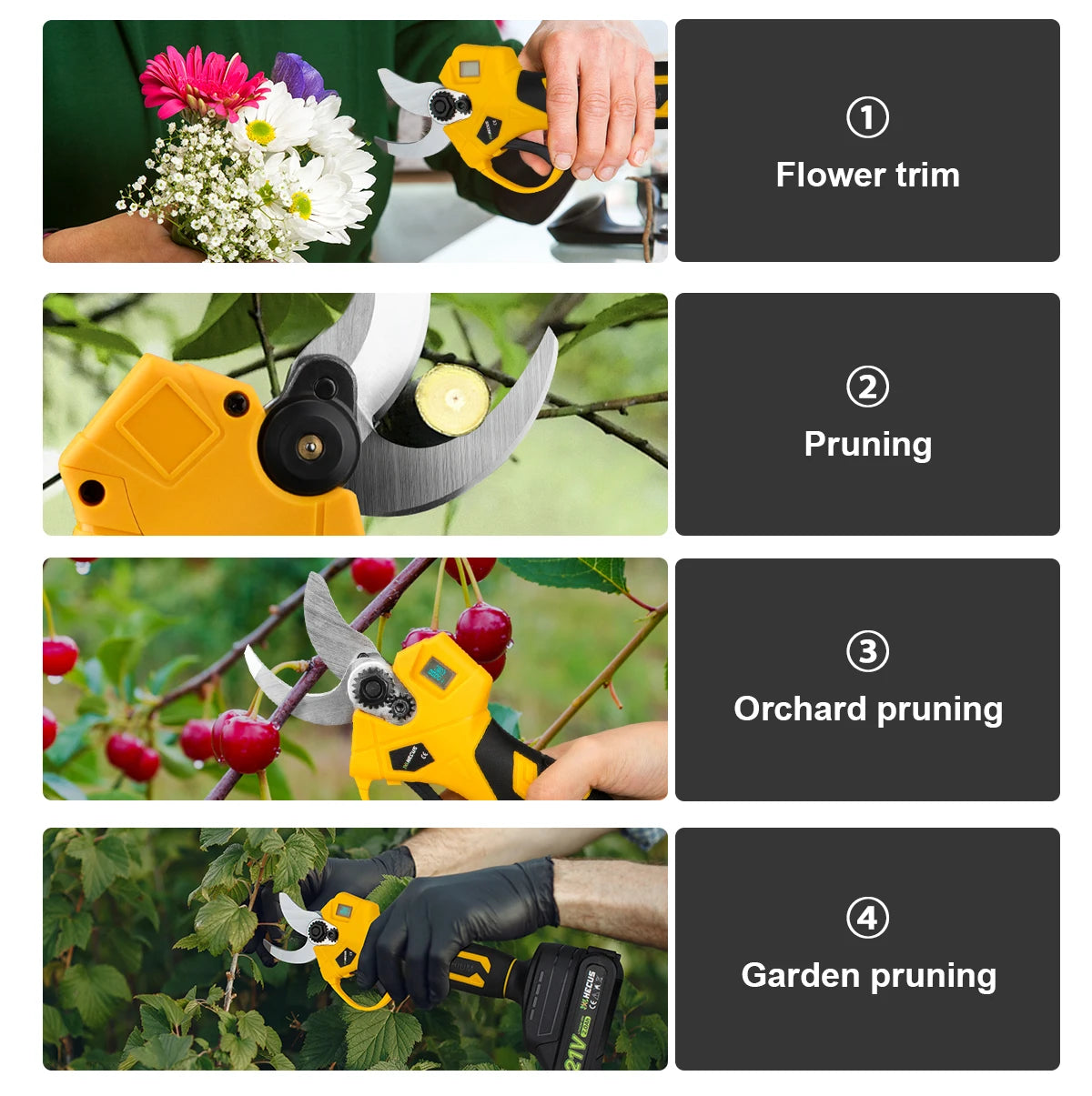 Elevate your gardening experience with our Cordless 30mm Brushless Electric Pruning Shears Dual Gears. Perfect for both amateurs and professionals, enjoy unmatched precision and comfort while pruning. Order now and transform the way you care for your plants!
