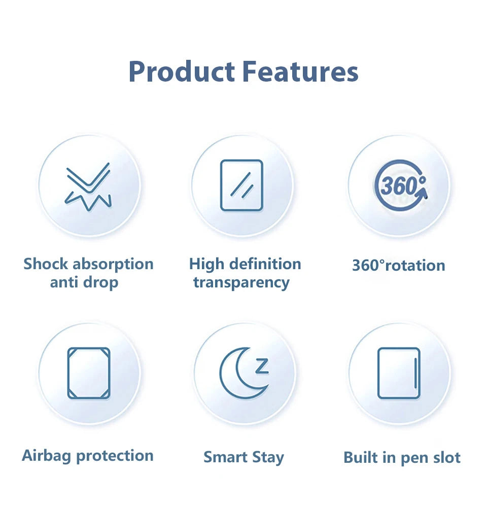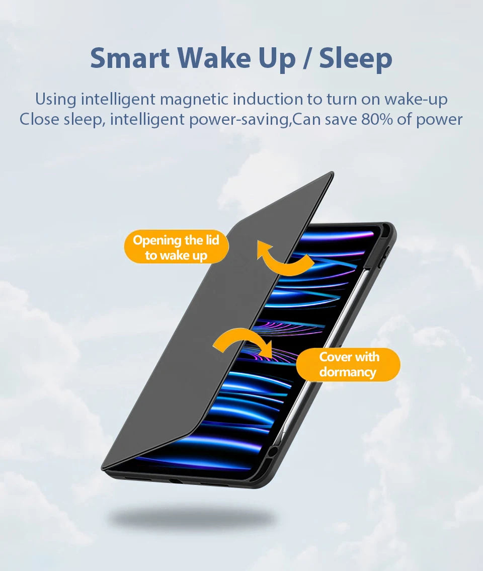 • Smart Wake-Up/Sleep Function: Automatically wakes your iPad when opened and sleeps when closed, conserving battery life.