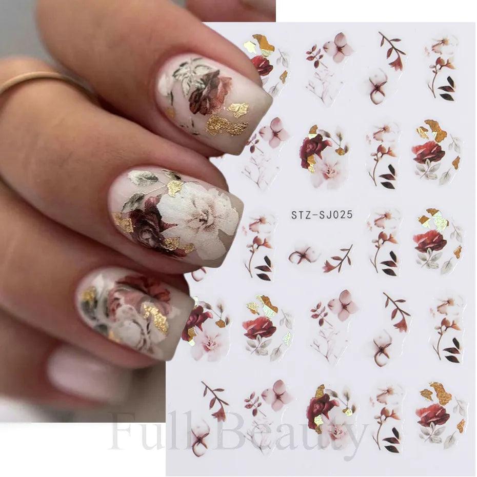 Autumn Splendor Nail Art Stickers Gold Leaf Floral Designs